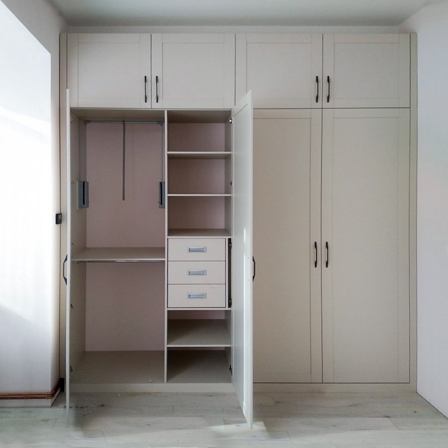 La même armoire modulaire peut être équipée de cintres pour vêtements, de tiroirs pour la literie, d'étagères pour livres ou jouets