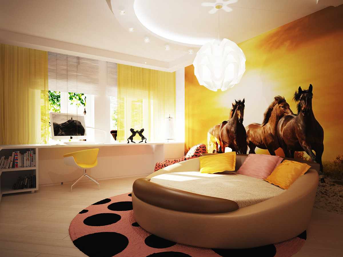 Les filles à partir de dix ans commencent à s'impliquer dans la mode. Si votre fille s'intéresse activement aux tendances de la mode, révise souvent le brillant du monde, vous pouvez choisir des papiers peints à thème pour la chambre à coucher. Par exemple, pour concevoir trois murs de couleur unie, des peintures murales à une photo avec l'image de mannequins du monde. La peinture murale peut être modifiée au fil du temps. Les peintures murales thématiques deviendront une incitation à prendre soin de vous, à se développer, à toujours avoir une apparence soignée, comme les modèles photo bien connus.