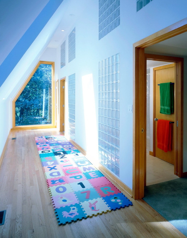 Les tapis de puzzle colorés les plus simples s'adapteront à toutes les chambres d'enfants. La photo montre une option avec des modules lumineux qui rechargeront votre bébé avec de l'énergie. Une large palette de couleurs vous aidera à apprendre les couleurs. Cette conception convient aux enfants qui commencent à peine à ramper et aux écoliers.