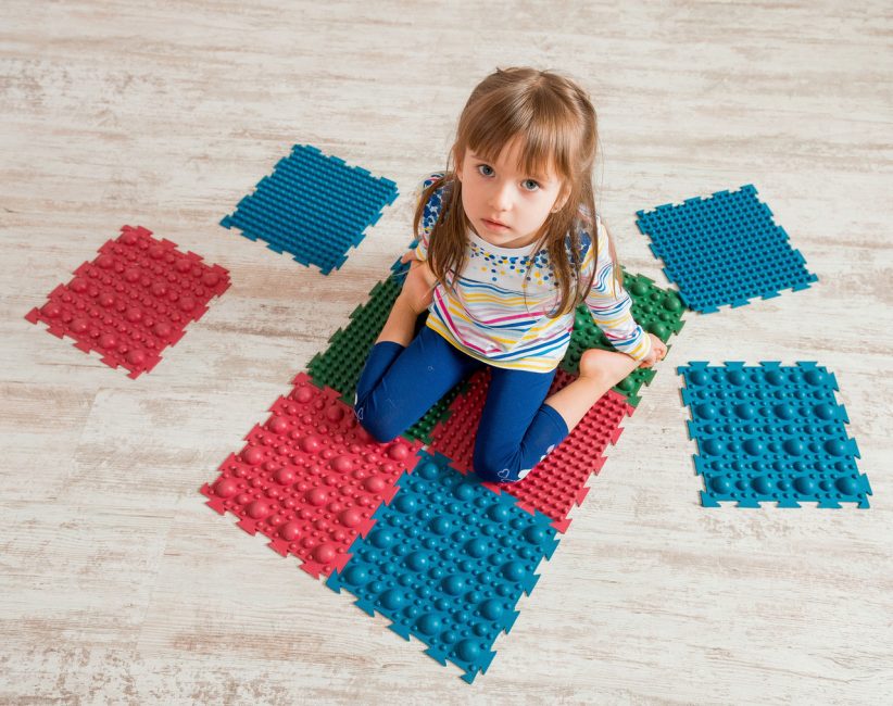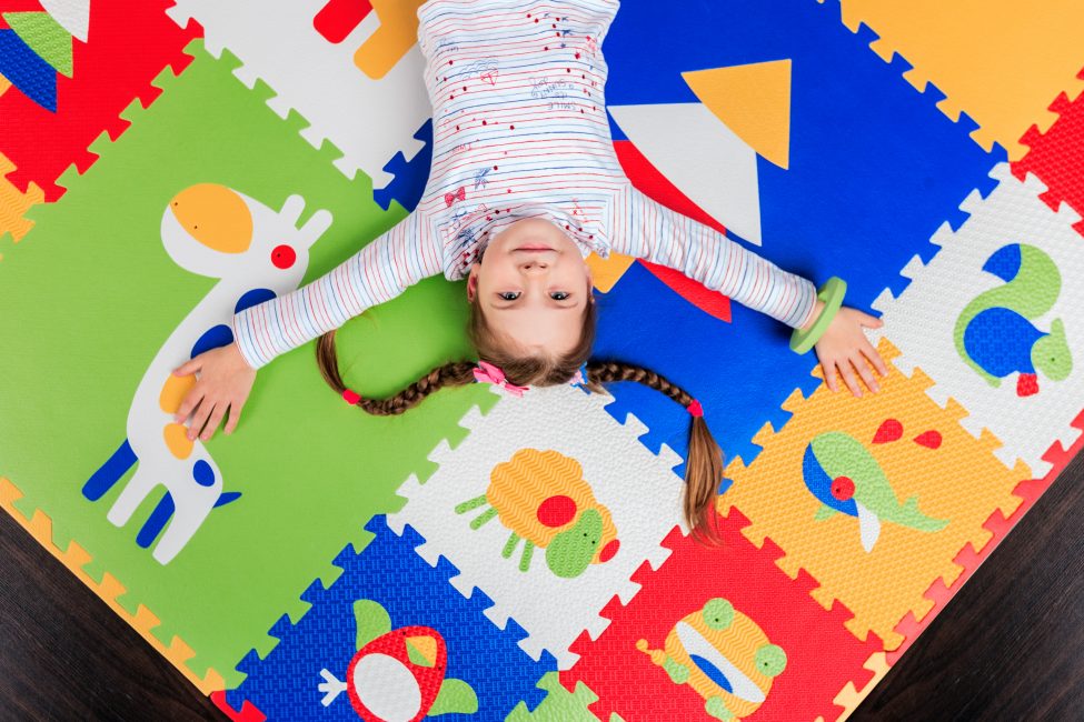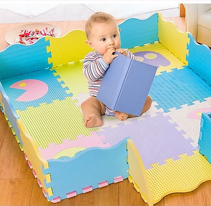 Le puzzle tapis avec côtés sera un excellent terrain de jeu pour un petit enfant