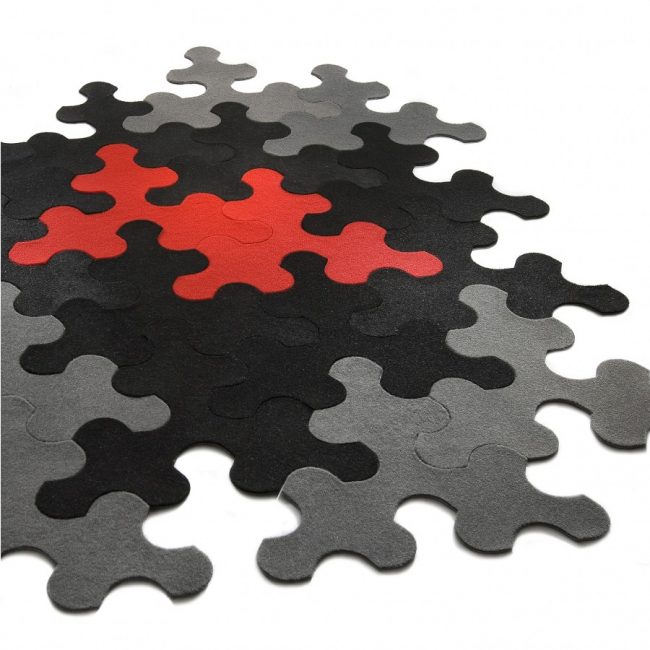 Le plus souvent, vous pouvez trouver une finition lisse standard, mais ce n'est pas la seule option. Certains fabricants fabriquent des puzzles, qui dans leur texture ressemblent à un tapis ou à un tapis à poils courts, en gazon artificiel. Beaucoup pensent qu’ils se salissent plus rapidement et qu’il est difficile de les nettoyer. Cette opinion est erronée. Les petits modules sont beaucoup plus faciles à nettoyer qu'un tapis ou un tapis. Il suffit de séparer la zone contaminée et de la laver au savon sous l'eau courante.