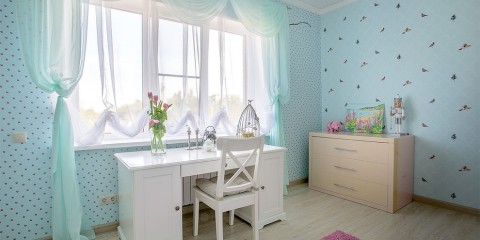 - Rideaux et papiers peints à l'intérieur d'une chambre d'enfant