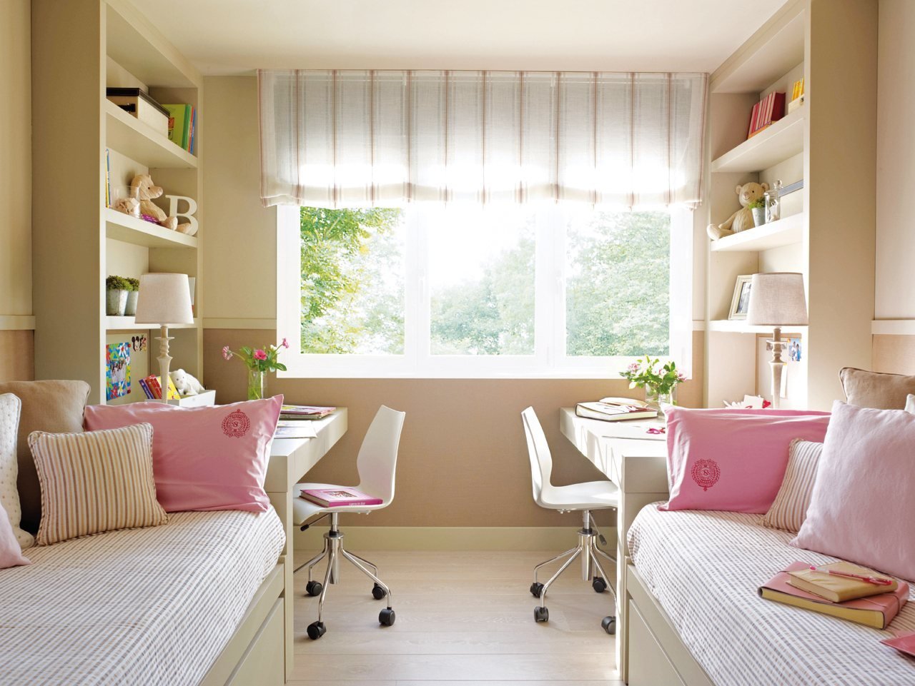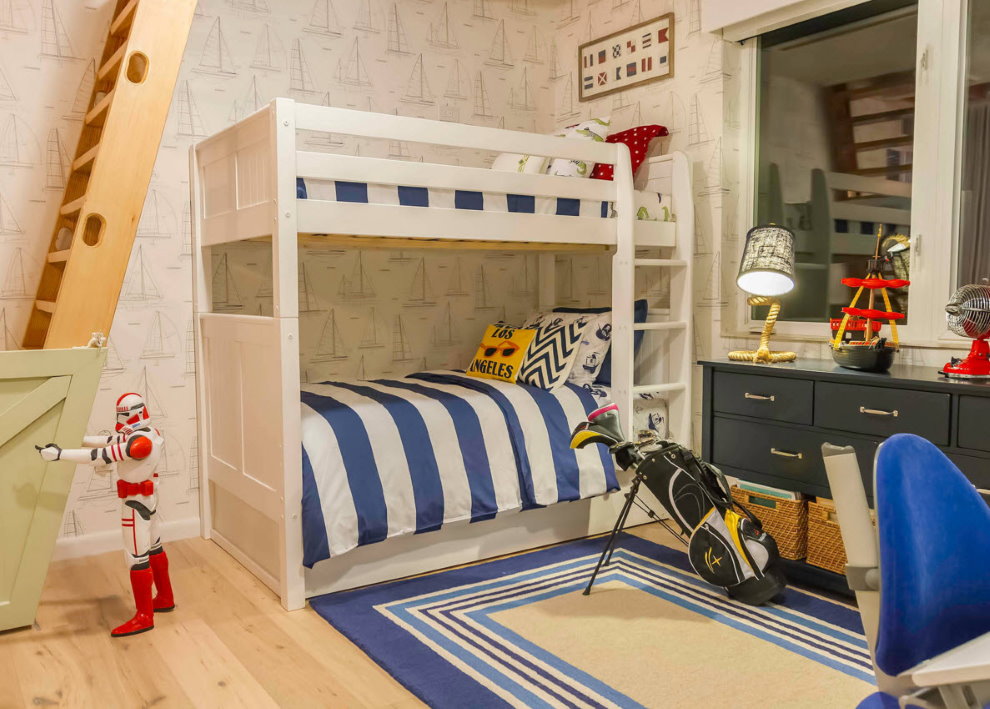 Pour les enfants d'âge préscolaire et les écoliers, il est conseillé d'aménager les locaux en fonction des loisirs de l'enfant. Par exemple, pour les garçons, la marine, l'espace, les thèmes militaires sont parfaits, pour les filles - caricaturaux, contes de fées. Pour éviter des réparations fréquentes, il est plus rentable d'utiliser des teintes claires neutres comme arrière-plan. En vieillissant, ajoutez des accents vifs sous forme de papier peint photo, de sacs d'oreiller juteux, d'équipement de sport, d'une coiffeuse avec miroir, etc.