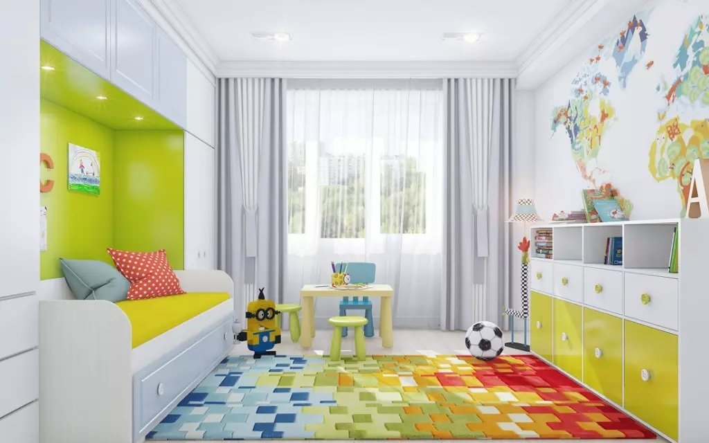 - Répartir correctement l'espace même des plus petits locaux permettra un zonage fonctionnel. Il est nécessaire d'allouer des places séparées pour les jeux actifs, le sommeil et les exercices mentaux.