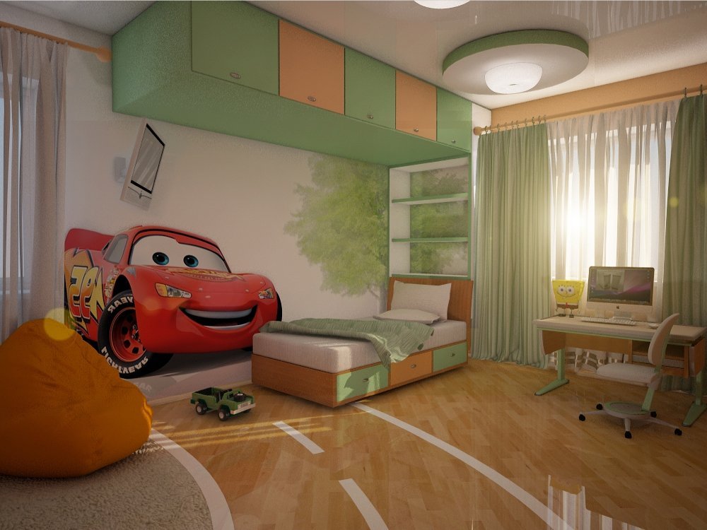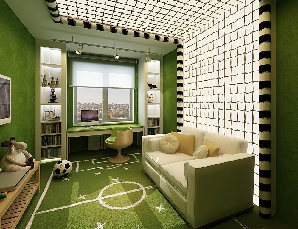 Il est difficile de créer un intérieur harmonieux sans zonage. Par conséquent, il est très important de distinguer la pièce par secteur. Zones de couchage, de sport, de jeu et de travail généralement affectées. Il est important d'équiper chacun en fonction de son objectif.L'organisation correcte de l'espace aidera à habituer l'enfant à la commande.