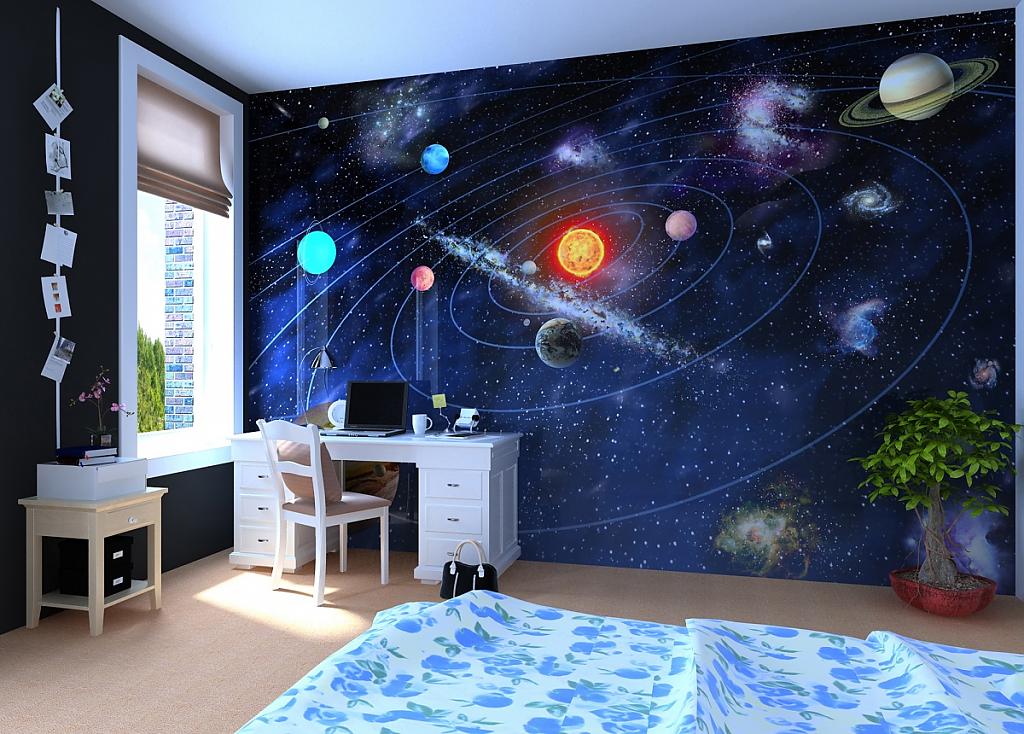 Selon les médecins, l'utilisation d'impressions lumineuses et de dessins sur papier peint est justifiée plus près de 2-3 ans. Jusqu'à ce moment, le système nerveux du bébé n'a pas été complètement renforcé, il convient donc de privilégier les teintes monophoniques chaudes et douces. Dans la zone de jeu d'un enfant de la maternelle, les peintures murales avec des personnages de vos dessins animés préférés sont superbes. Les écoliers préfèrent voir des papiers peints thématiques sur les murs. Plus proche de 14-15 ans, le choix se porte sur des variétés plus calmes. Ils peuvent être complétés par des figures géométriques, des rayures larges et étroites.