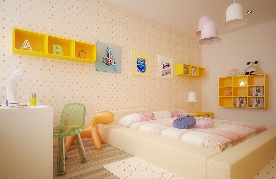 Une élégante chambre d'enfant rose avec du jaune est une bonne solution pour une chambre située du côté nord. La couleur jaune associe soleil, chaleur. Il soulage instantanément la fatigue, augmente l'humeur, donne un sentiment de vitalité. Cette palette de couleurs est idéale pour l'enfant d'un écolier qui doit se lever tôt tous les jours. Avec cette combinaison, le jaune est généralement utilisé en petites quantités. Par exemple, dans les textiles, dans les dessins sur les meubles, les murs.