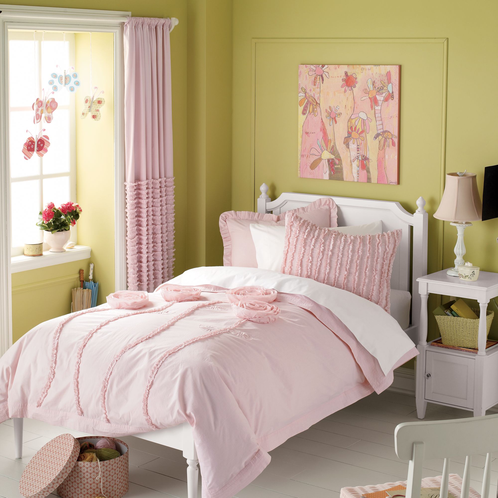 Chambre confortable aux couleurs pêche pour une fille d'âge préscolaire