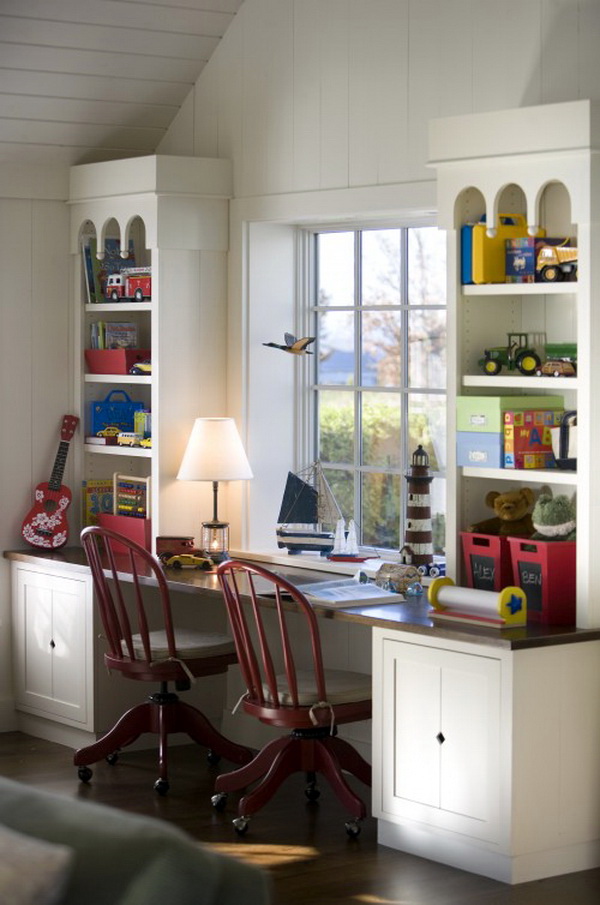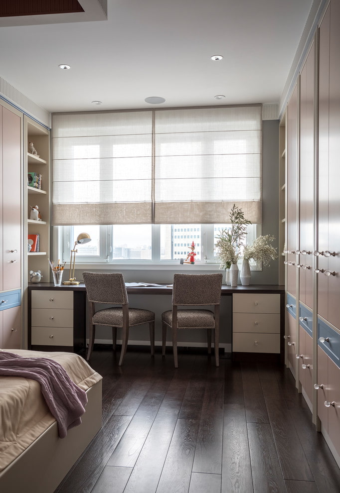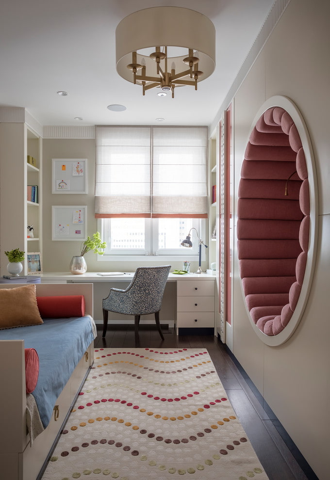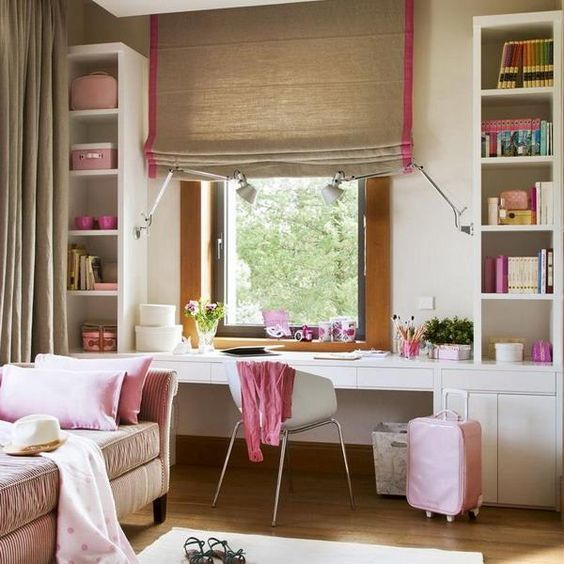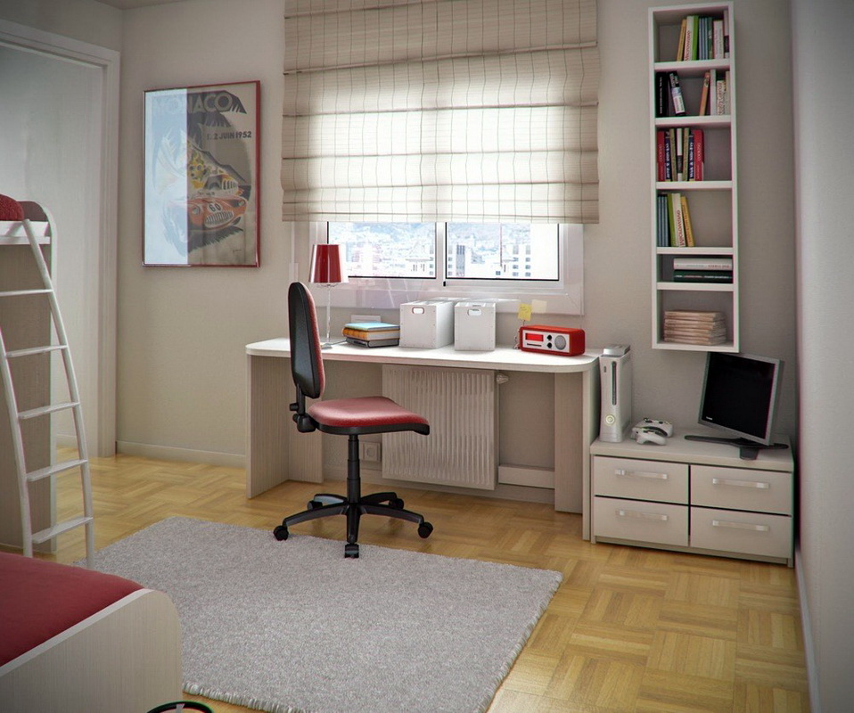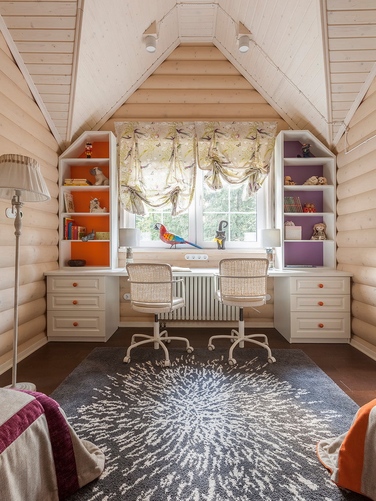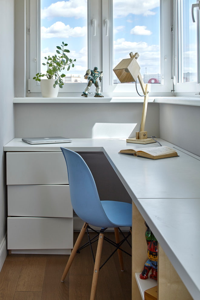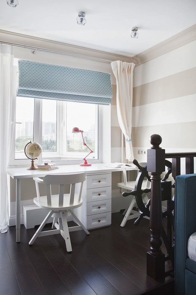 Un siège de fenêtre est rarement occupé par des meubles. Une fois familiarisé avec les différentes options d'hébergement dans cette zone du bureau, il ne sera pas difficile de choisir la bonne pour une pièce particulière. Les photos présentées de la zone de travail dans la chambre des enfants près de la fenêtre aideront à visualiser le futur intérieur et les différentes couleurs.