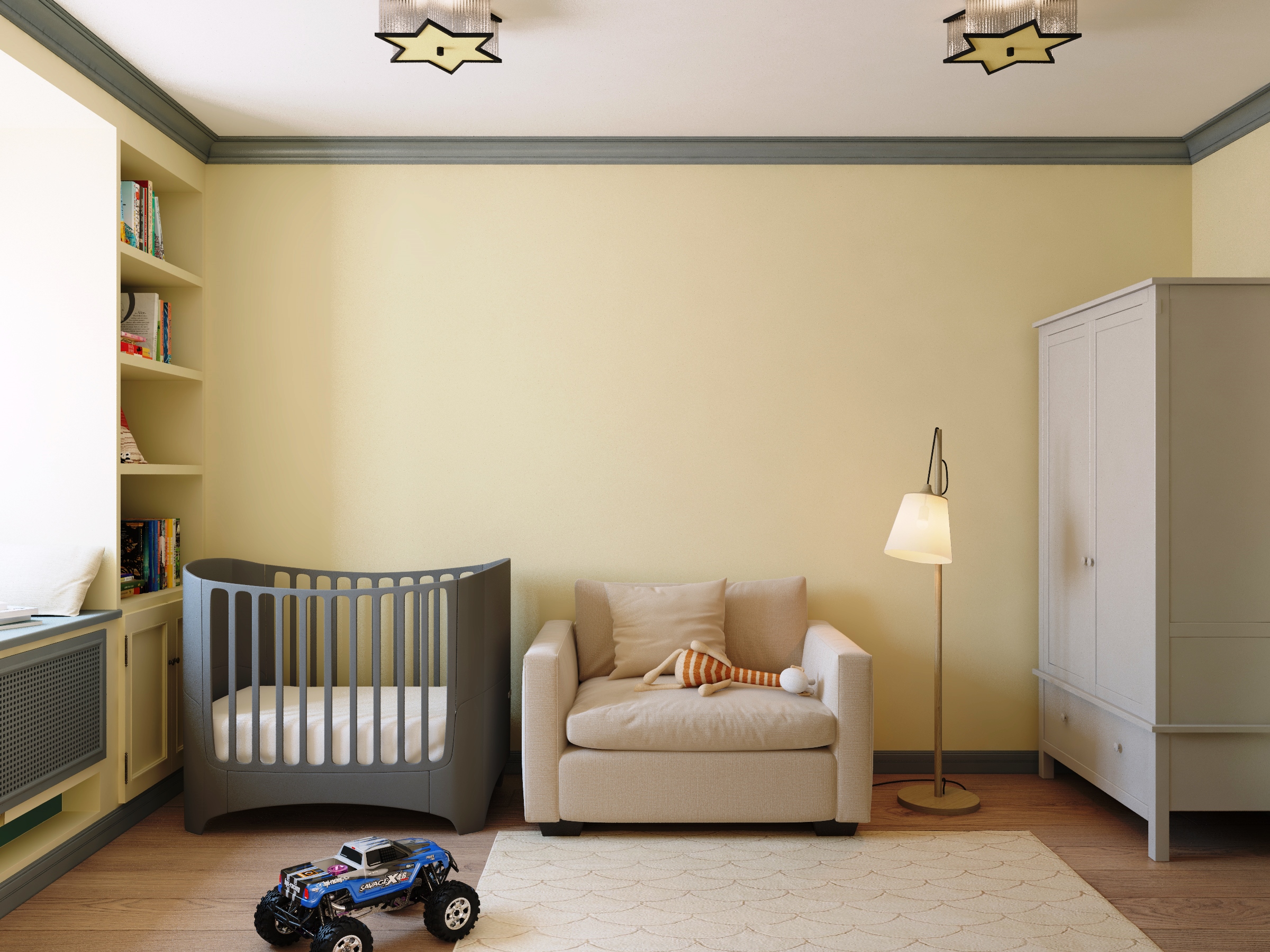 Palette de couleurs calmes dans une petite chambre d'enfant