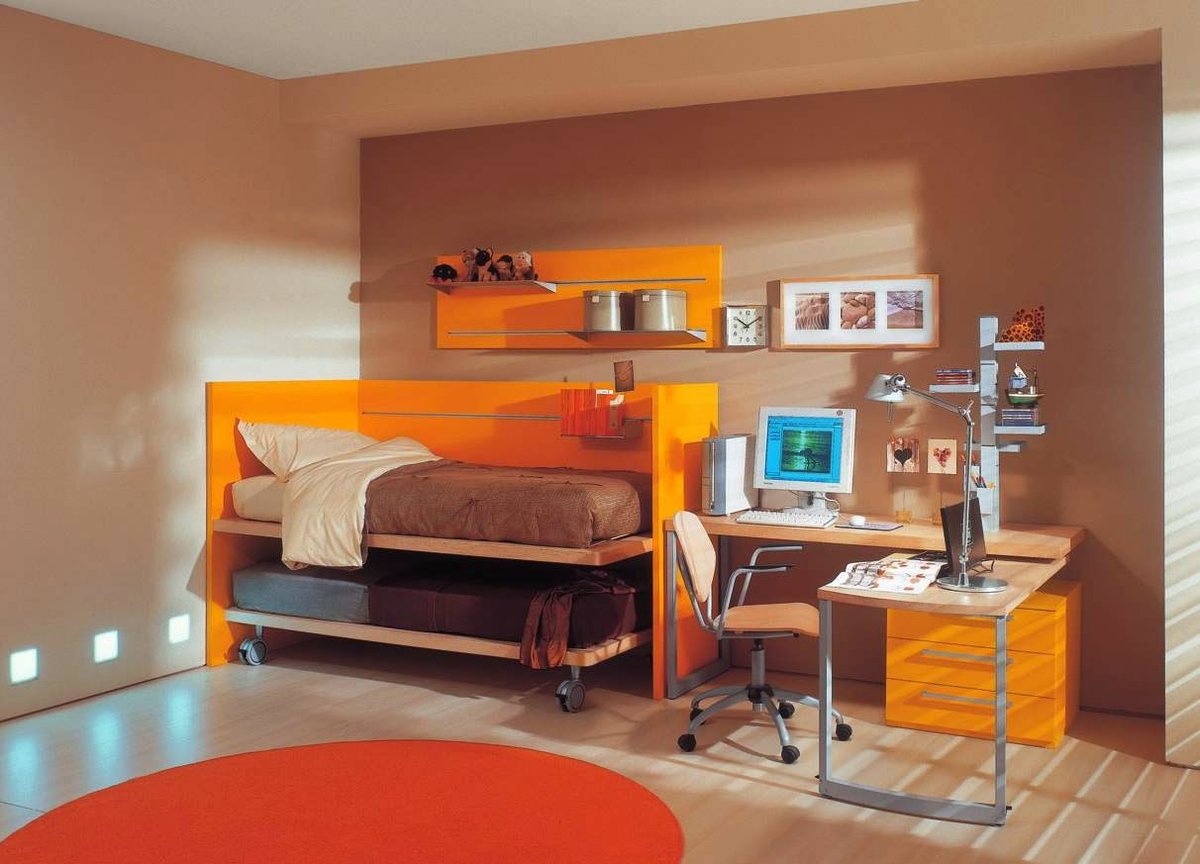 Une chambre moderne pour adolescents ou enfants aux couleurs chaudes vous réchauffera, procurera une sensation de détente et de confort. Les teintes chaudes sont toujours comme créées pour la chambre de bébé!