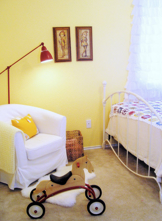 - Il passe bien au jaune avec de l'orange et du brun. Ajoutez un peu de beige ou la couleur du lait concentré. Il en résultera une pièce très positive dans laquelle grandira un bébé calme et gai! Le jaune vous égaye, tandis que les tons marron et beige vous apaisent. Et il a l'air élégant. Les meubles en bois naturel et les rideaux en lin naturel conviennent ici.