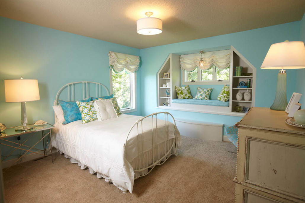 - Ne faites pas toute la chambre dans une nuance, en choisissant soigneusement les rideaux pour les meubles qui correspondent aux tons. Ainsi, vous créez un endroit flou qui gênera. Les yeux doivent avoir quelque chose à «saisir», alors utilisez des contrastes.