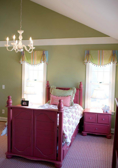 Si vous décidez néanmoins de mettre un lit dans la chambre, et non un canapé pliant - une merveilleuse solution. L'essentiel est de ne pas perdre avec la taille. La fille grandira, achètera un lit pour grandir, pour qu'il dure de nombreuses années.