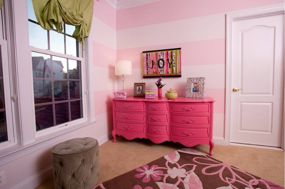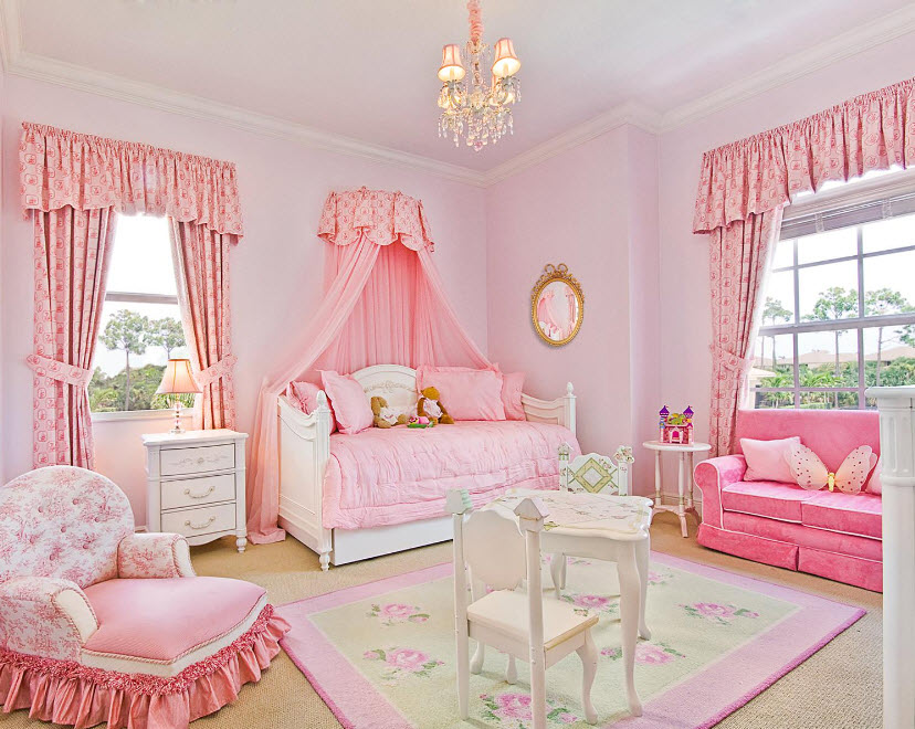 Les éléments restants à l'intérieur de la chambre de la fille peuvent être sélectionnés ponctuellement, selon les besoins. Mais il est important de choisir la couleur et la texture, pour que tout soit harmonieux.