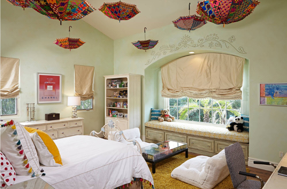 Dans la chambre spacieuse d'une fille d'âge scolaire, cela vaut la peine d'organiser un espace de loisirs où l'hôtesse pourra rencontrer ses amis