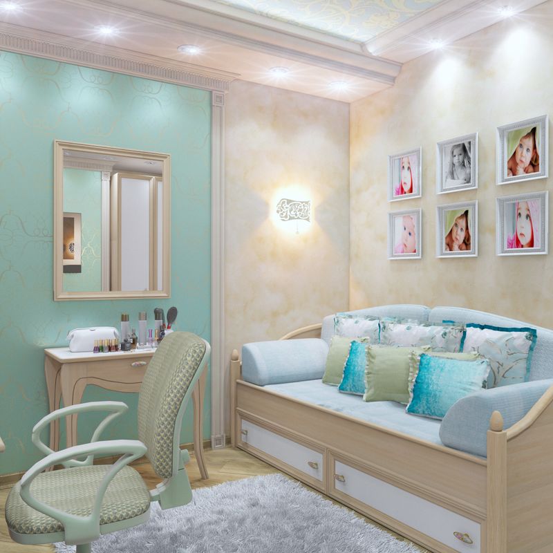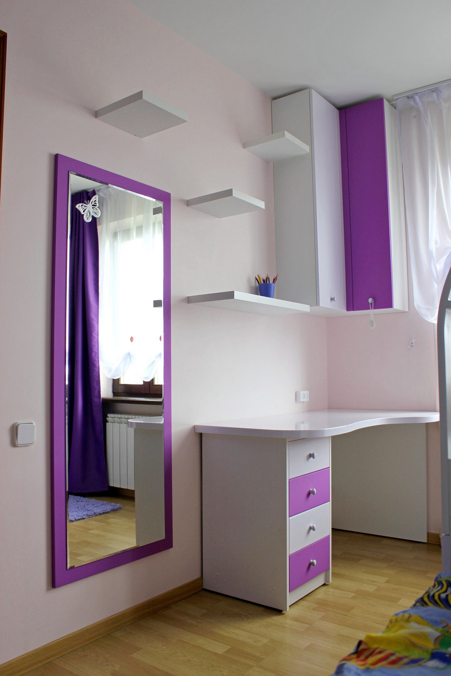Il est souhaitable que la fille ait son propre coin beauté: un grand miroir mural et une coiffeuse, une coiffeuse compacte ou au moins une table de chevet miniature. C'est une fille!