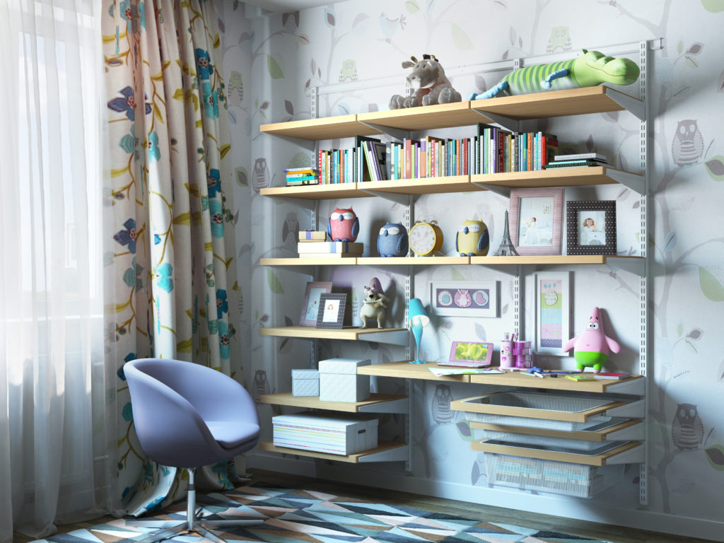 Les meubles les plus simples et les plus abordables sont les étagères ouvertes: suspendues, au sol ou encastrées