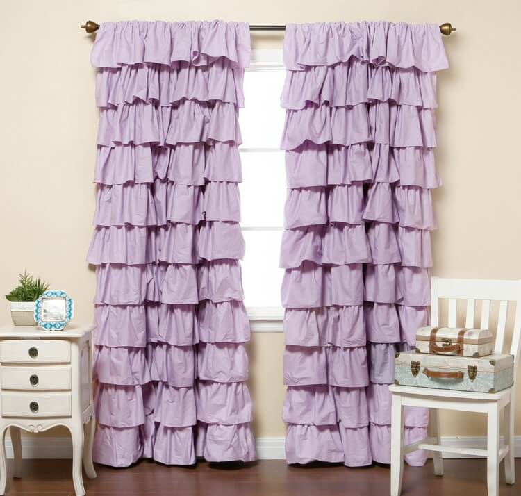 - Violet. Le rideau violet clair rappelle les délicats pétales des fleurs printanières et les chaudes nuits d'été.Ce rideau est décoré d'étoiles, de papillons, en satin ou mat. Les meilleures combinaisons sont le rose pâle, le turquoise et le miel.
