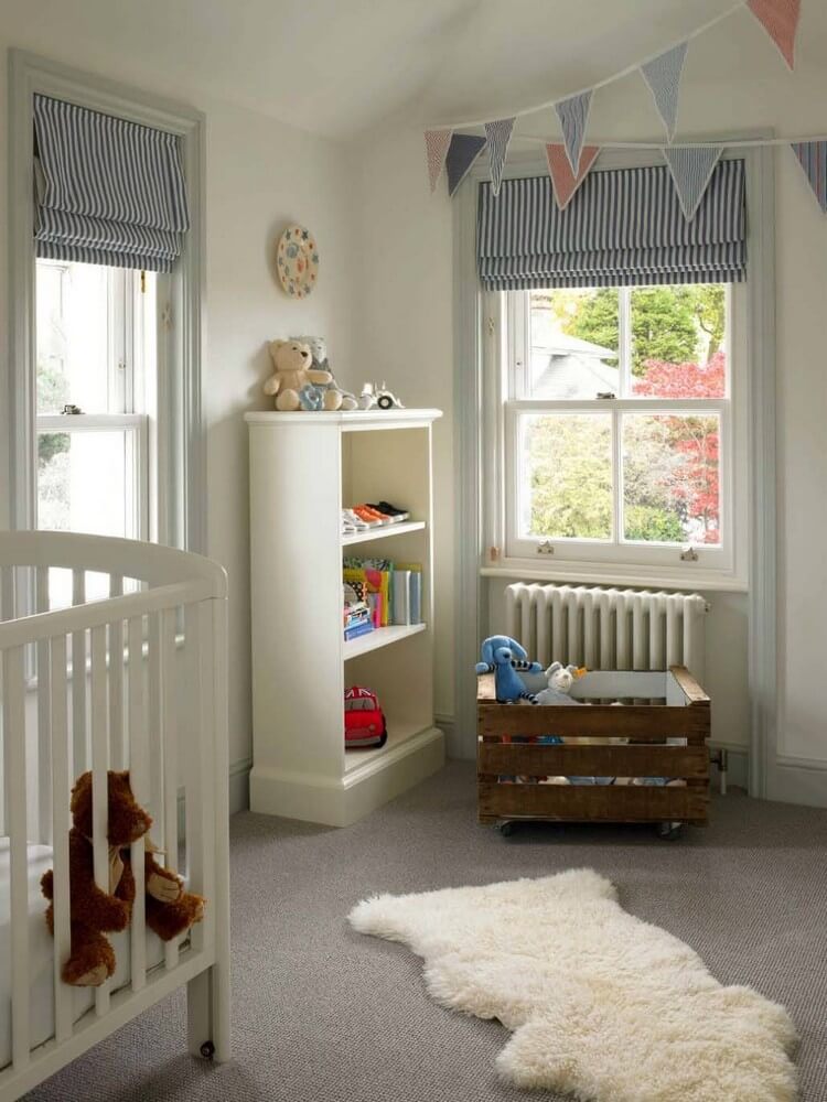 Rideaux laconiques simples dans une chambre d'enfant de style scandinave