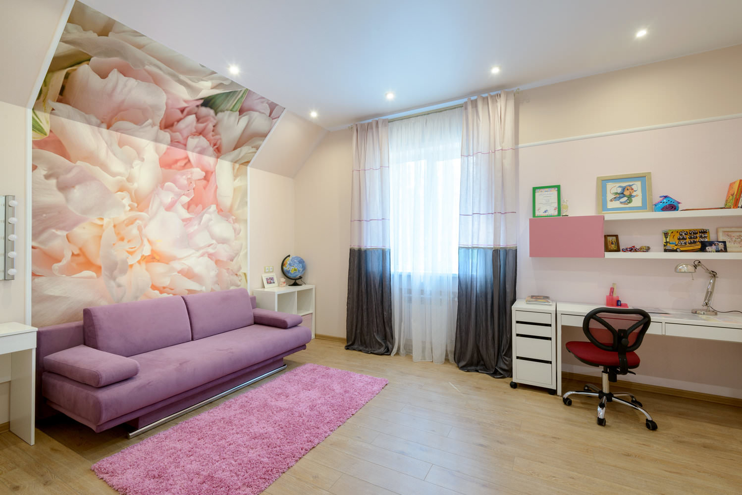 Rideaux élégants avec impression photo de fleurs - une option appropriée pour la chambre d'une adolescente