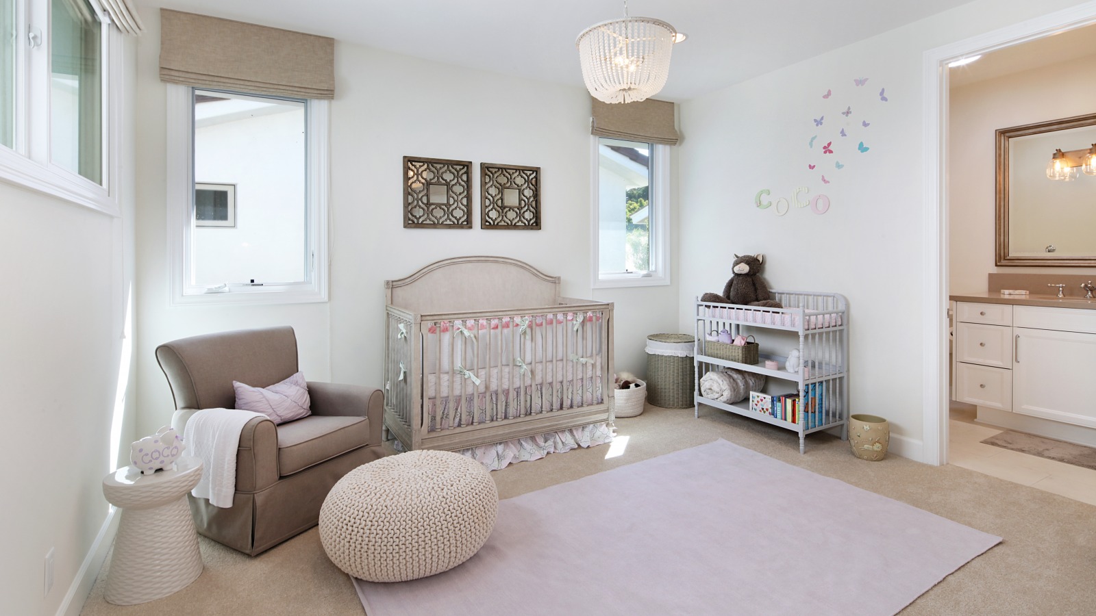 Tapis rayé couvrant la majeure partie du sol de la chambre de bébé