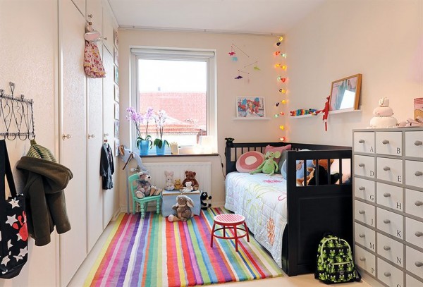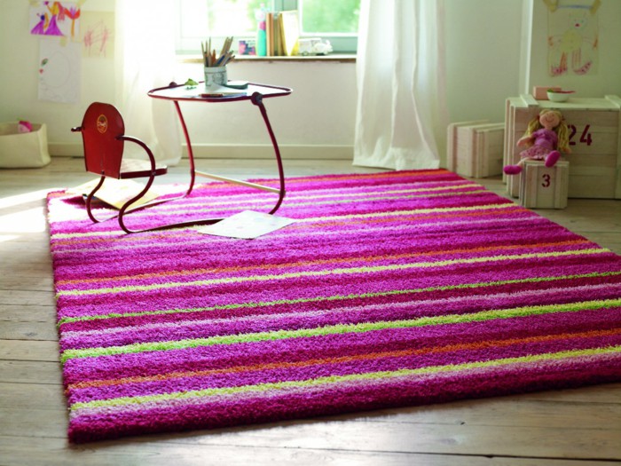 En utilisant les rayures sur le tapis, vous pouvez ajuster l'espace de la chambre des enfants