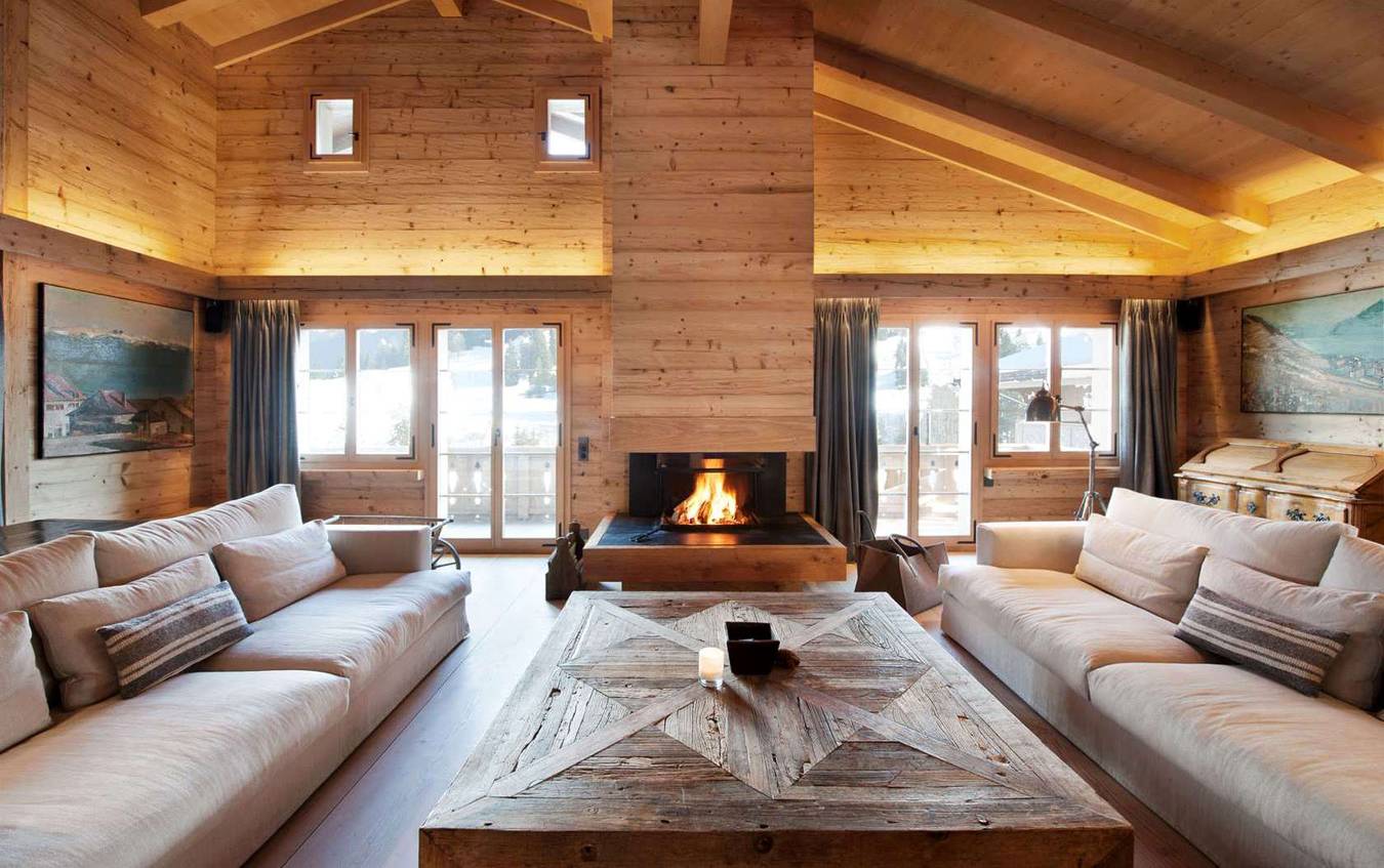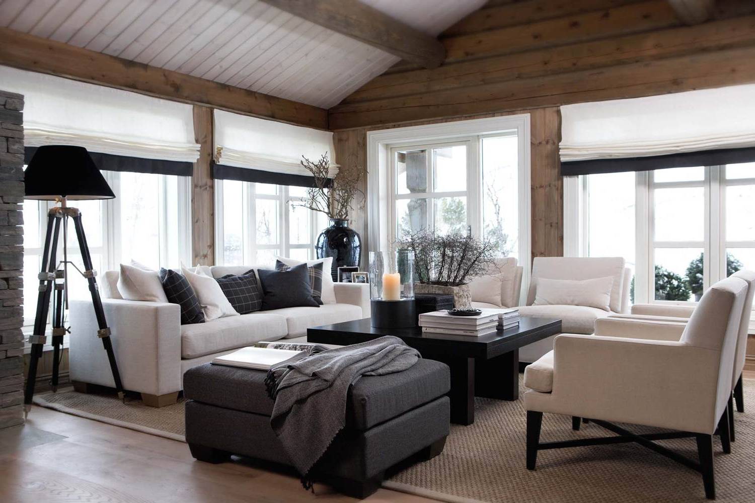 Διακόσμηση σαλόνι σε ένα ξύλινο σπίτι