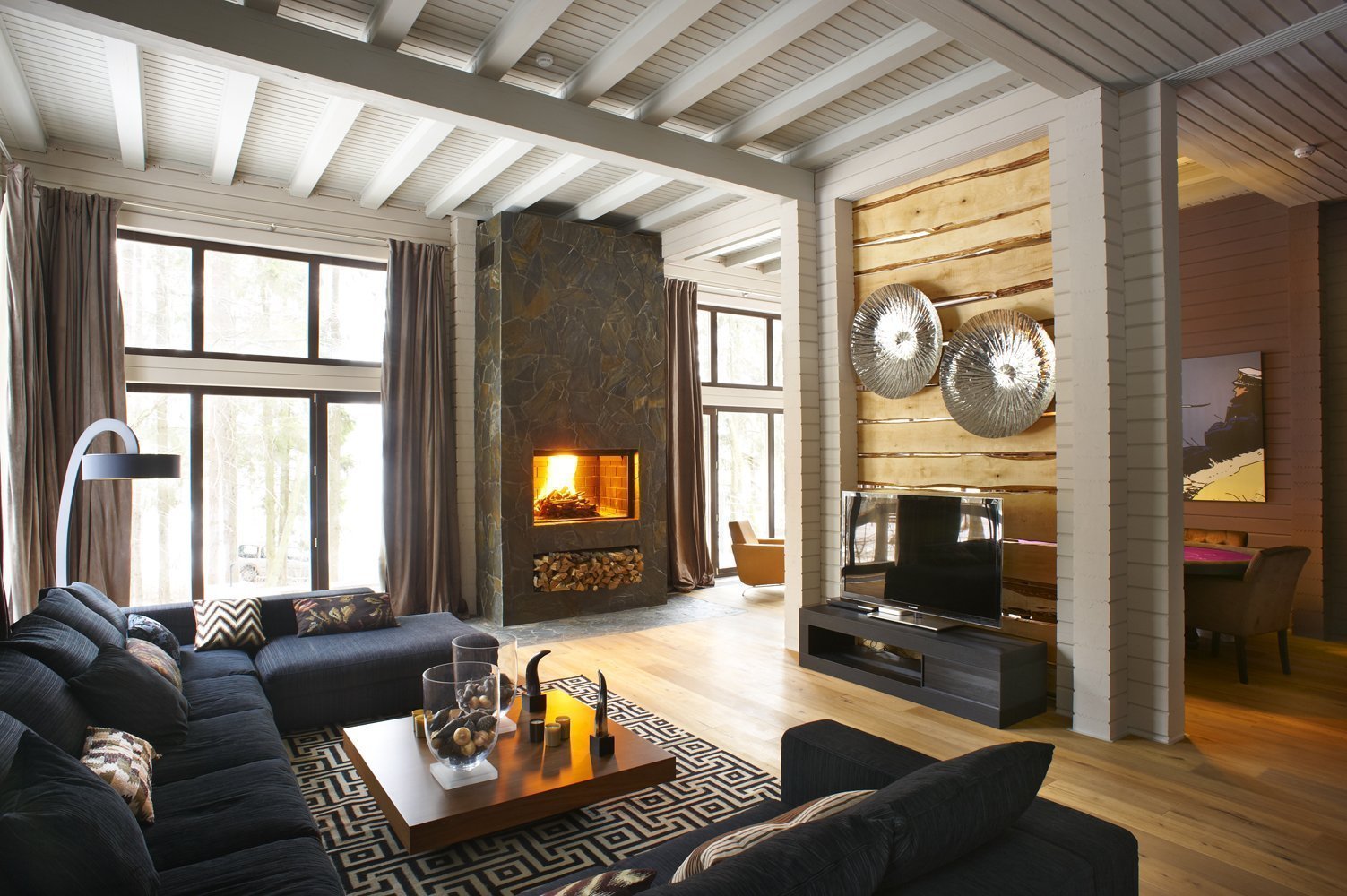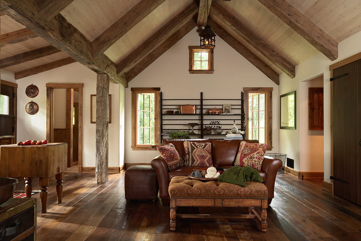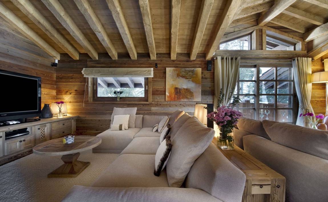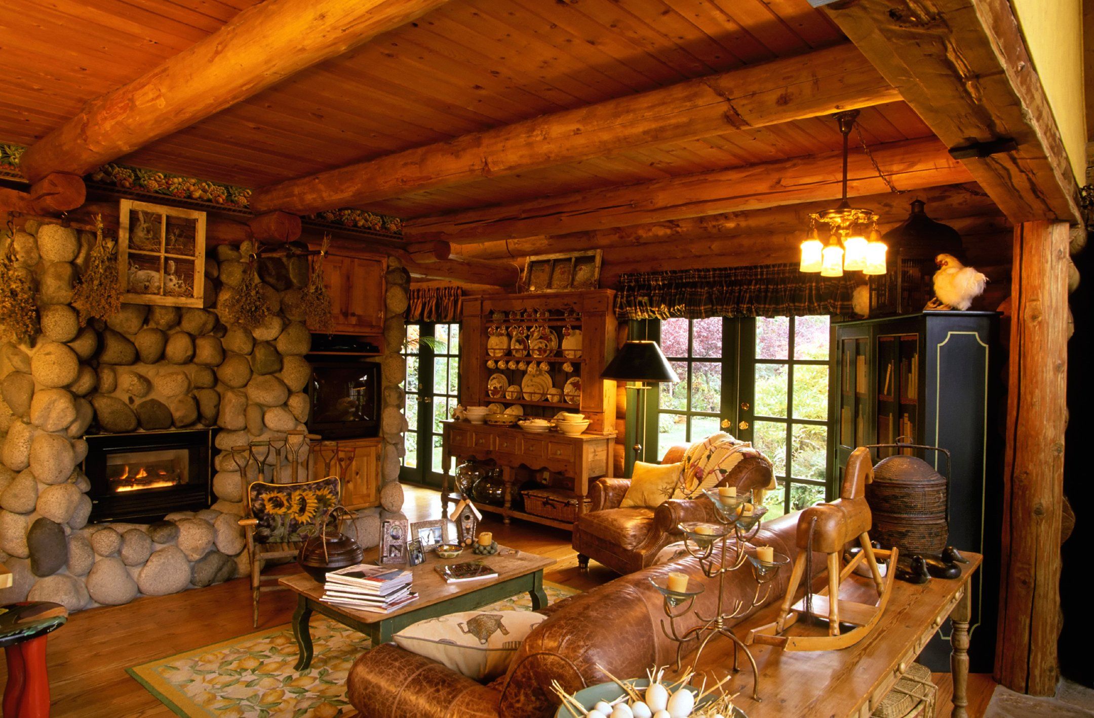 - Διακόσμηση σαλόνι σε ένα ξύλινο σπίτι