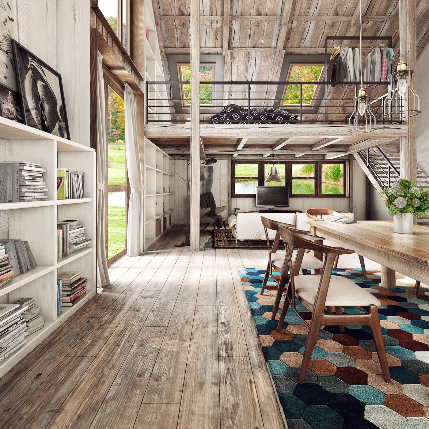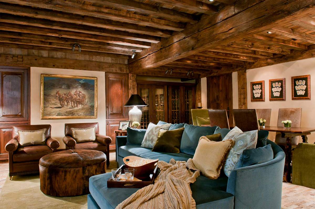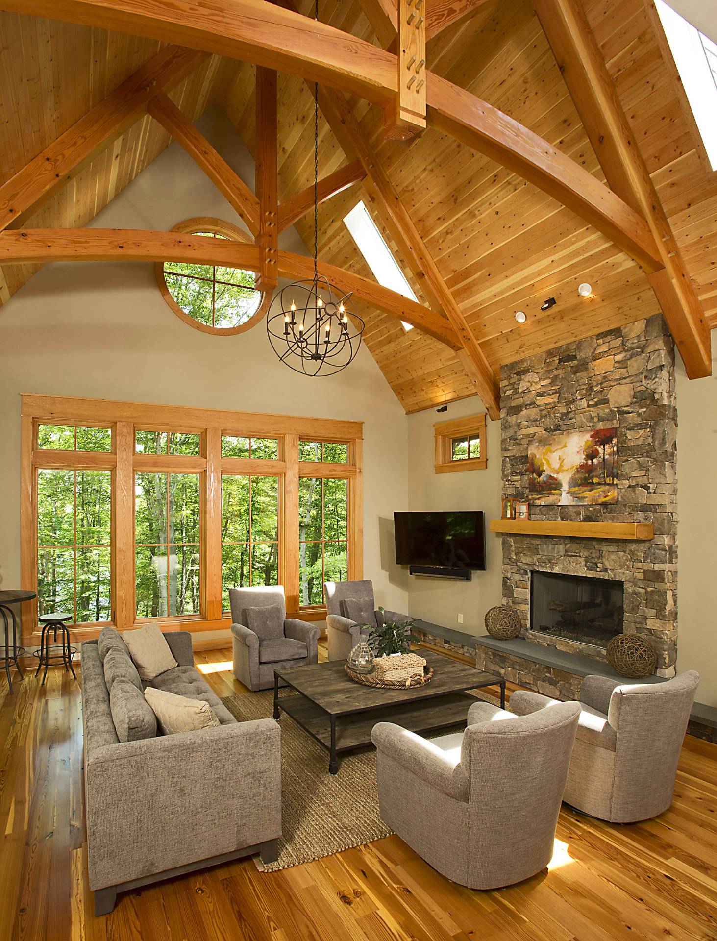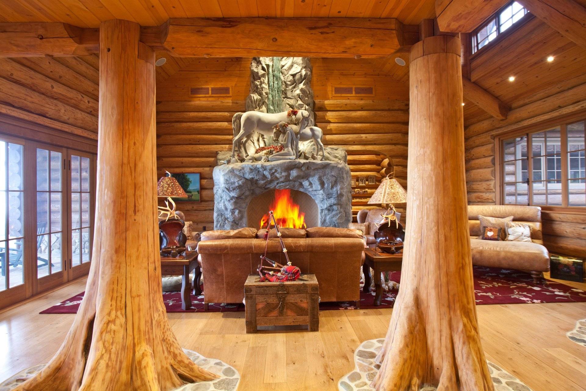 - Διακόσμηση σαλόνι σε ένα ξύλινο σπίτι