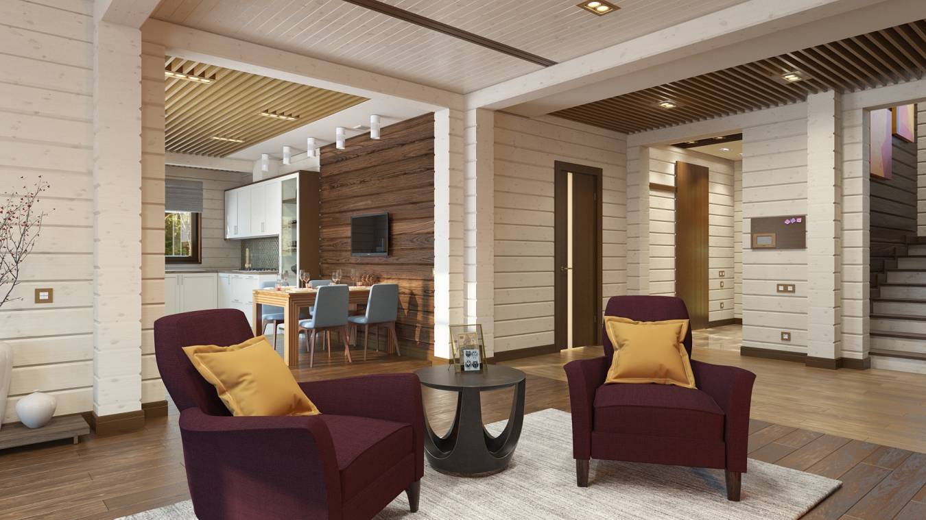 - Χαρακτηριστικά σχεδιασμού του καθιστικού ενός κορμού και ξύλινου σπιτιού