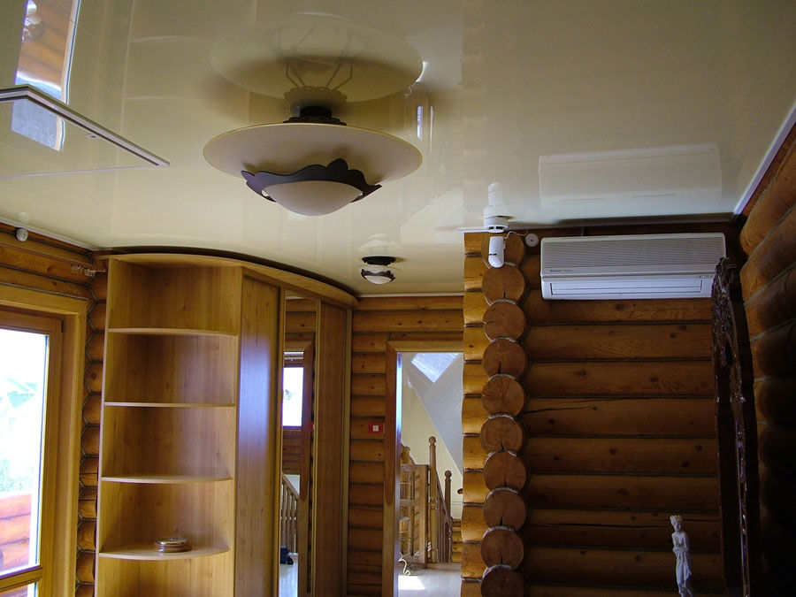 - Υλικά για το ανώτατο όριο. Σε σπίτια από ξύλο, η οροφή είναι συνήθως απλά βαμμένη. Το χρώμα βοηθά στην επίτευξη της επιθυμητής απόχρωσης, σύμφωνα με την ιδέα του σχεδιασμού, τονίζει τη φυσική υφή του ξύλου. Αν το ανώτατο όριο δεν χρειάζεται να δώσει χρώμα, τότε μπορείτε να χρησιμοποιήσετε συνηθισμένο βερνίκι.