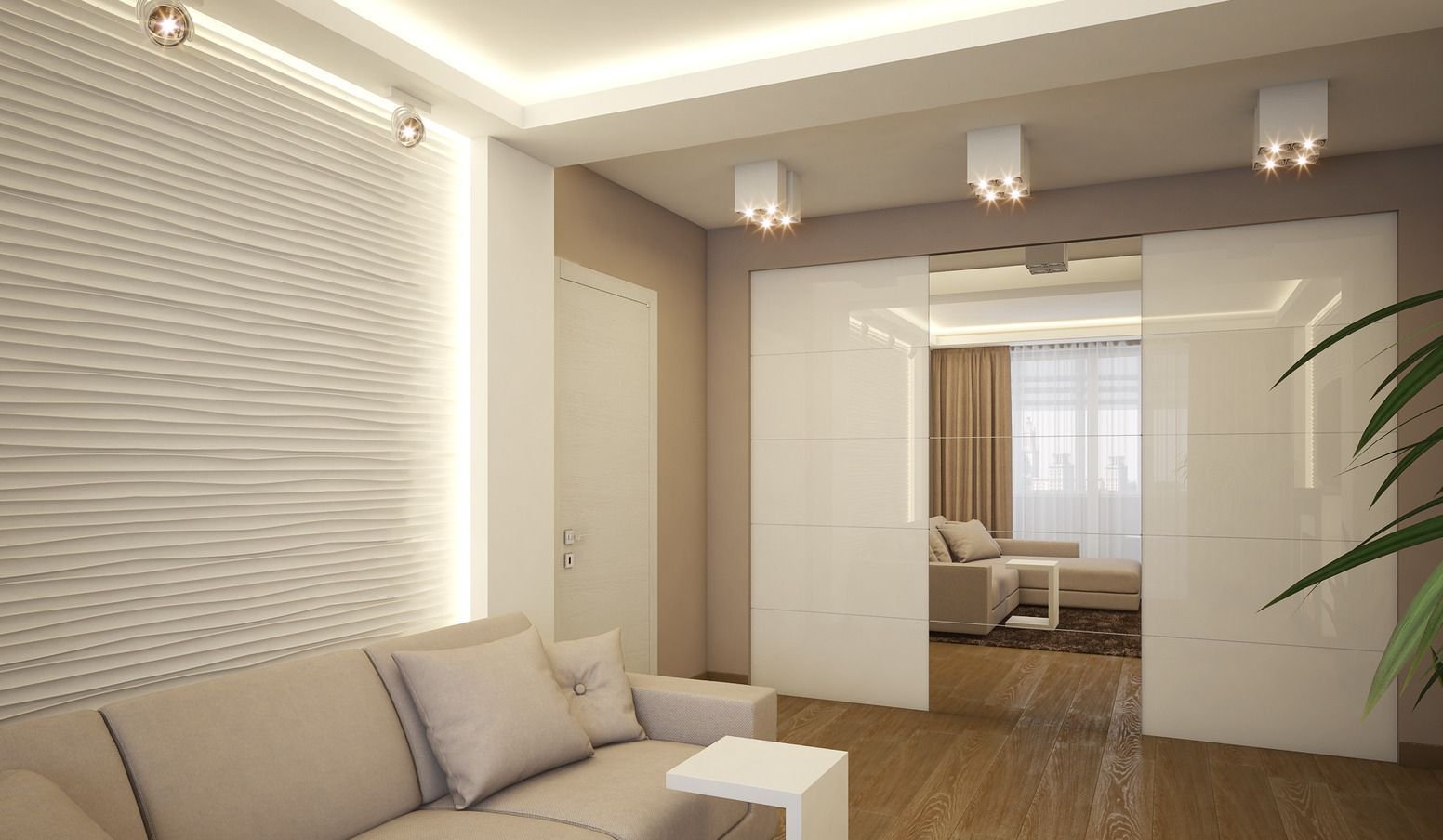 Εάν ένας ή δύο άνθρωποι πρόκειται να ζήσουν σε ένα διαμέρισμα, προσπαθούν να κάνουν ένα στούντιο έξω από αυτό, επεκτείνοντας το άνοιγμα μεταξύ της κουζίνας και του δωματίου όσο το δυνατόν περισσότερο. Σε μια άλλη ενσωμάτωση, οργανώνεται μια περιοχή dressing και η είσοδος στο σαλόνι μεταφέρεται λίγο - πιο κοντά στο διάδρομο ή στην κουζίνα. Όταν ένας ενήλικας και ένα παιδί ζουν στο διαμέρισμα, είναι εύκολο να οργανωθούν δύο ξεχωριστά υπνοδωμάτια, και στο μπαλκόνι για να κάνετε μια μίνι μελέτη.