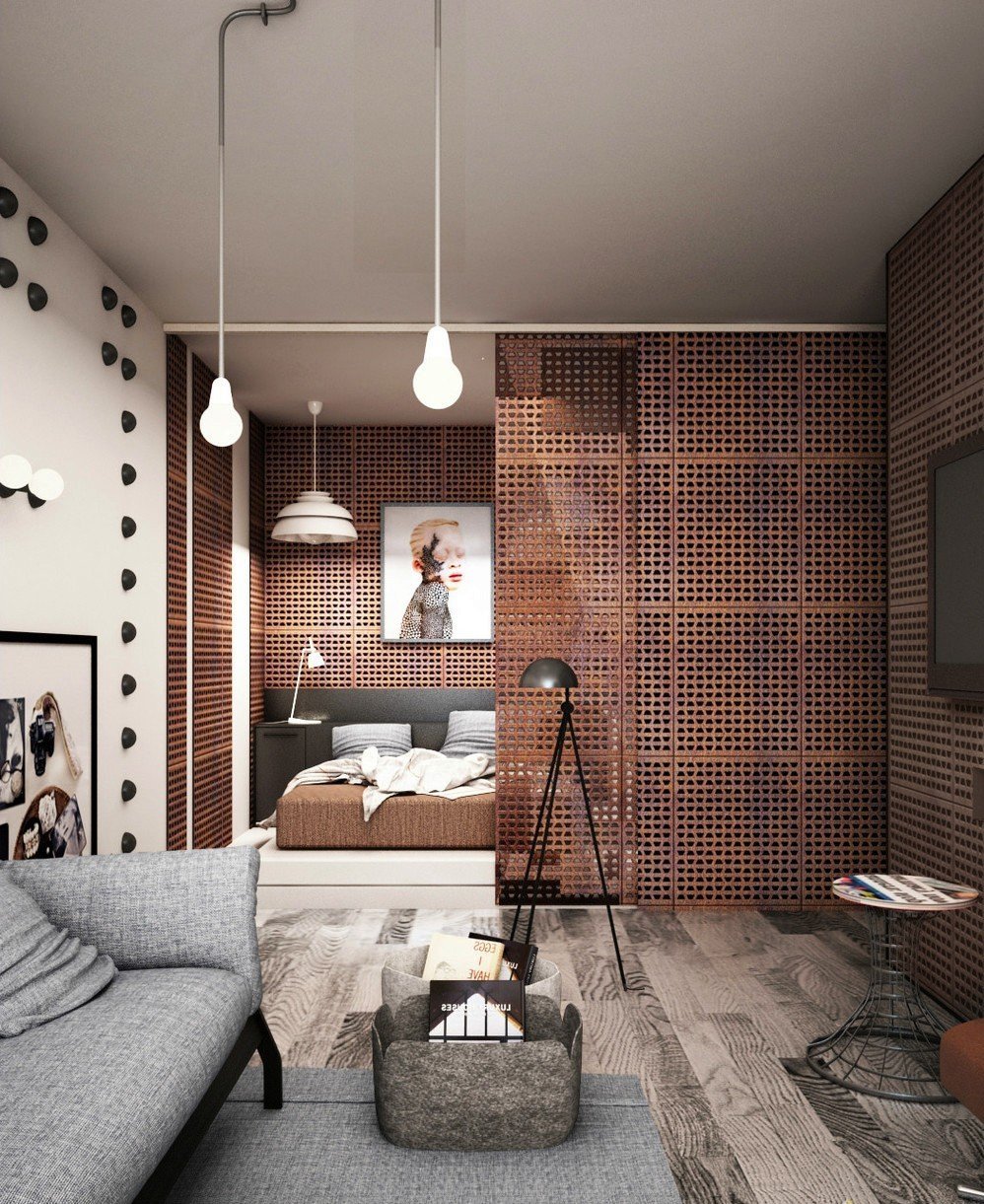 - Παραδείγματα διαφορετικών εσωτερικών χώρων και σχεδίων σε ένα διαμέρισμα ενός δωματίου p44t