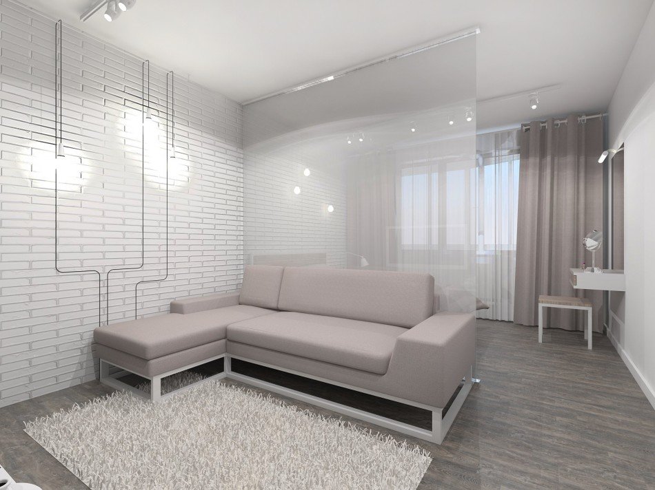 Εάν το μέγεθος του δωματίου επιτρέπει, μια τυπική odnushka μπορεί να μετατραπεί σε ένα διαμέρισμα δύο δωματίων με την προσθήκη χωρισμάτων ή τη διαίρεση του χώρου με μια οθόνη, κουρτίνες ή έπιπλα