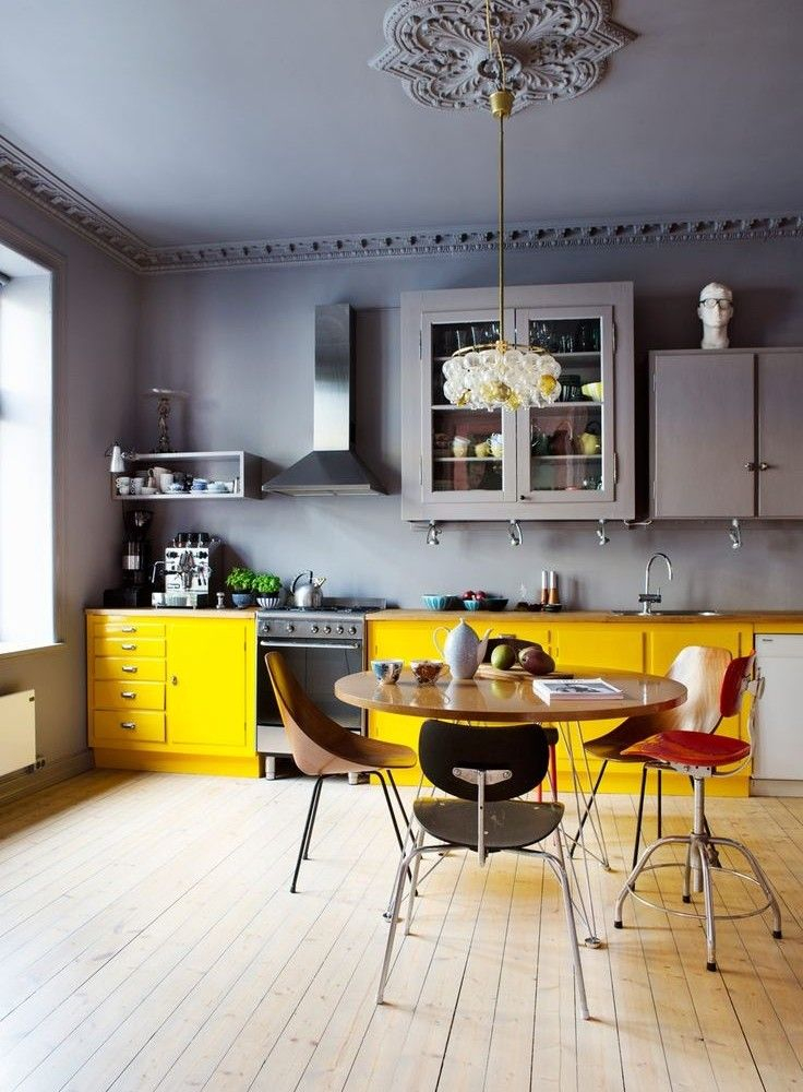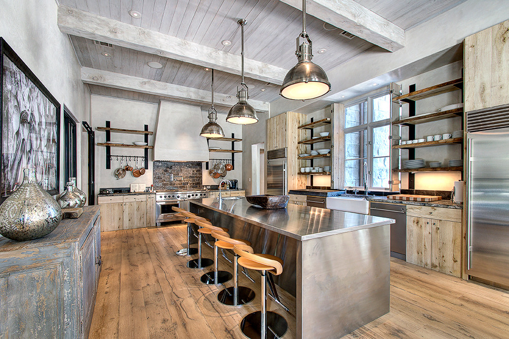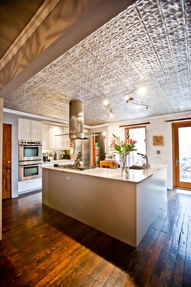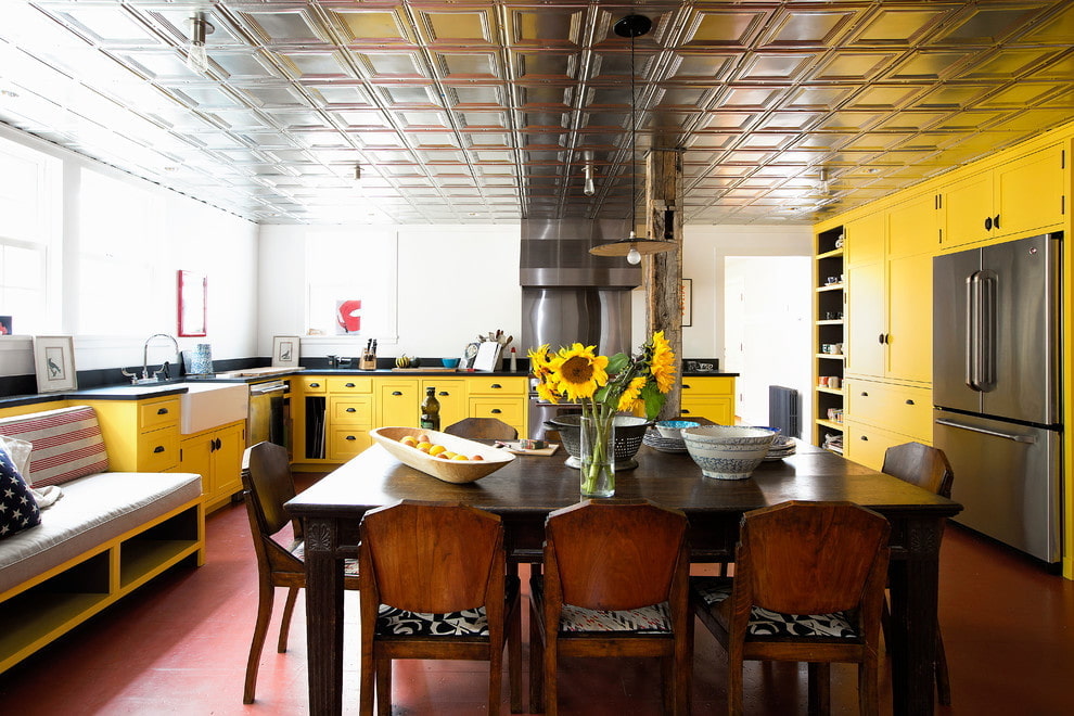 - Στην κουζίνα με ψηλά ταβάνια, μπορείτε να αντέξετε οικονομικά. Αυτός είναι ένας πολύ αποτελεσματικός τρόπος διακόσμησης, ριζωμένος στην ιστορία.