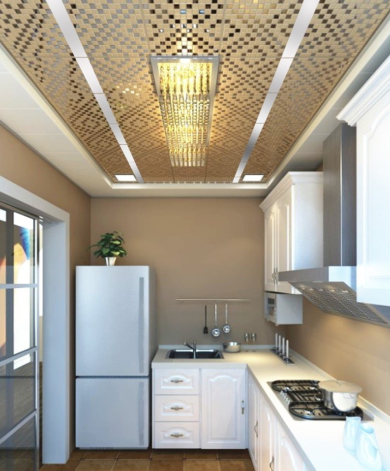 Για μια μικρή ή μεσαία κουζίνα, η καλύτερη λύση είναι μια επίπεδη οροφή με ελαφριά σκιά