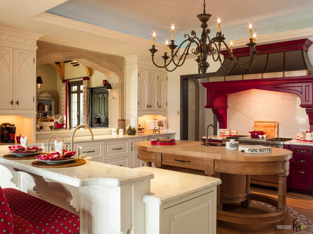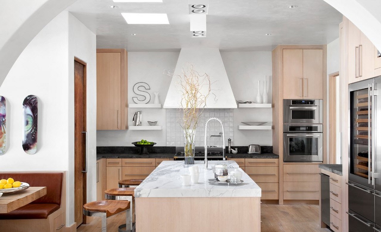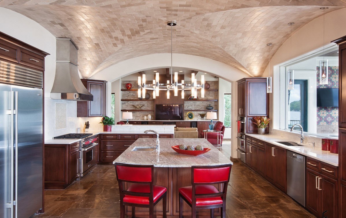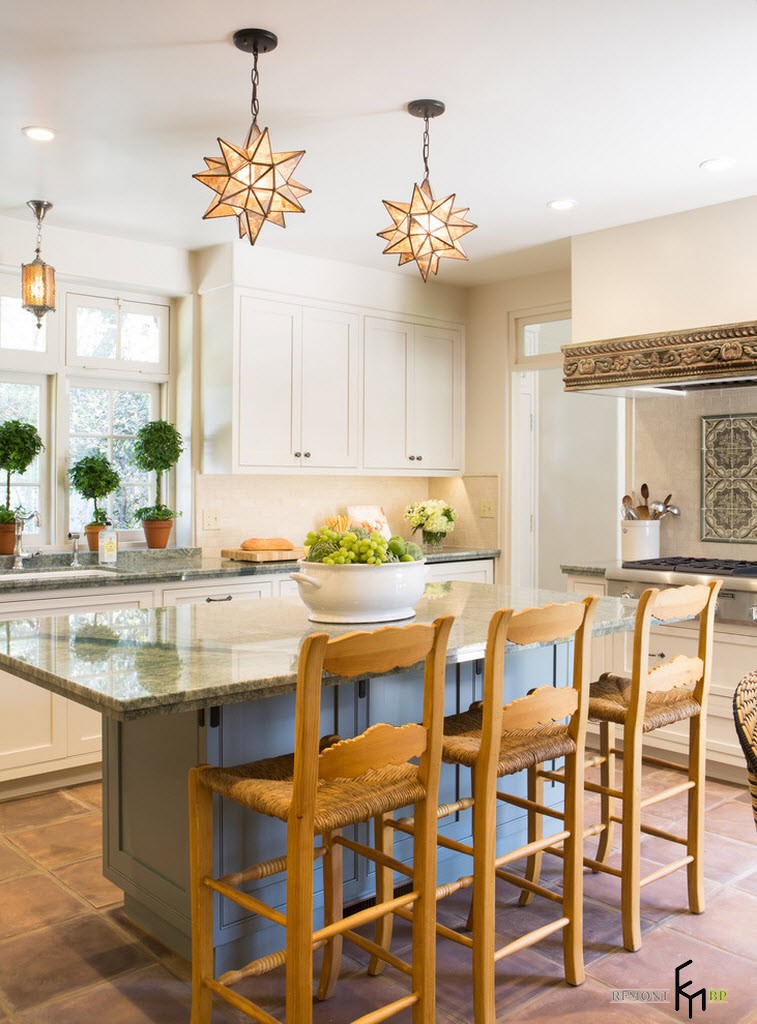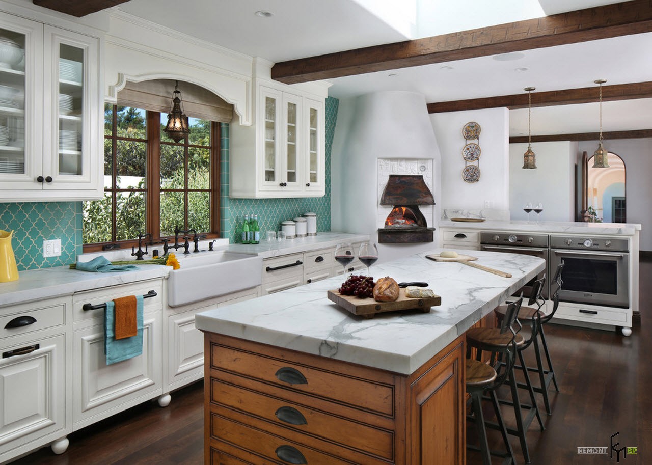 Όμορφη κουζίνα με μεσογειακό στυλ θα πρέπει να φαίνεται απλή και φυσική. Αυτό θα βοηθήσει φυσικά υλικά για διακόσμηση, όπως γύψο, ξύλο, τούβλο, πέτρα και άλλα.