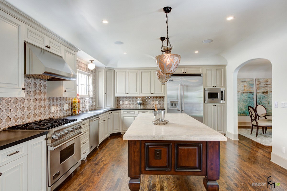 - το φυσικό ξύλο χρησιμοποιείται για το πάτωμα, τα laminate και τα κεραμικά επιτρέπονται σε ένα μοντέρνο στυλ, συμπεριλαμβανομένων εκείνων με ένα κομψό μοτίβο?