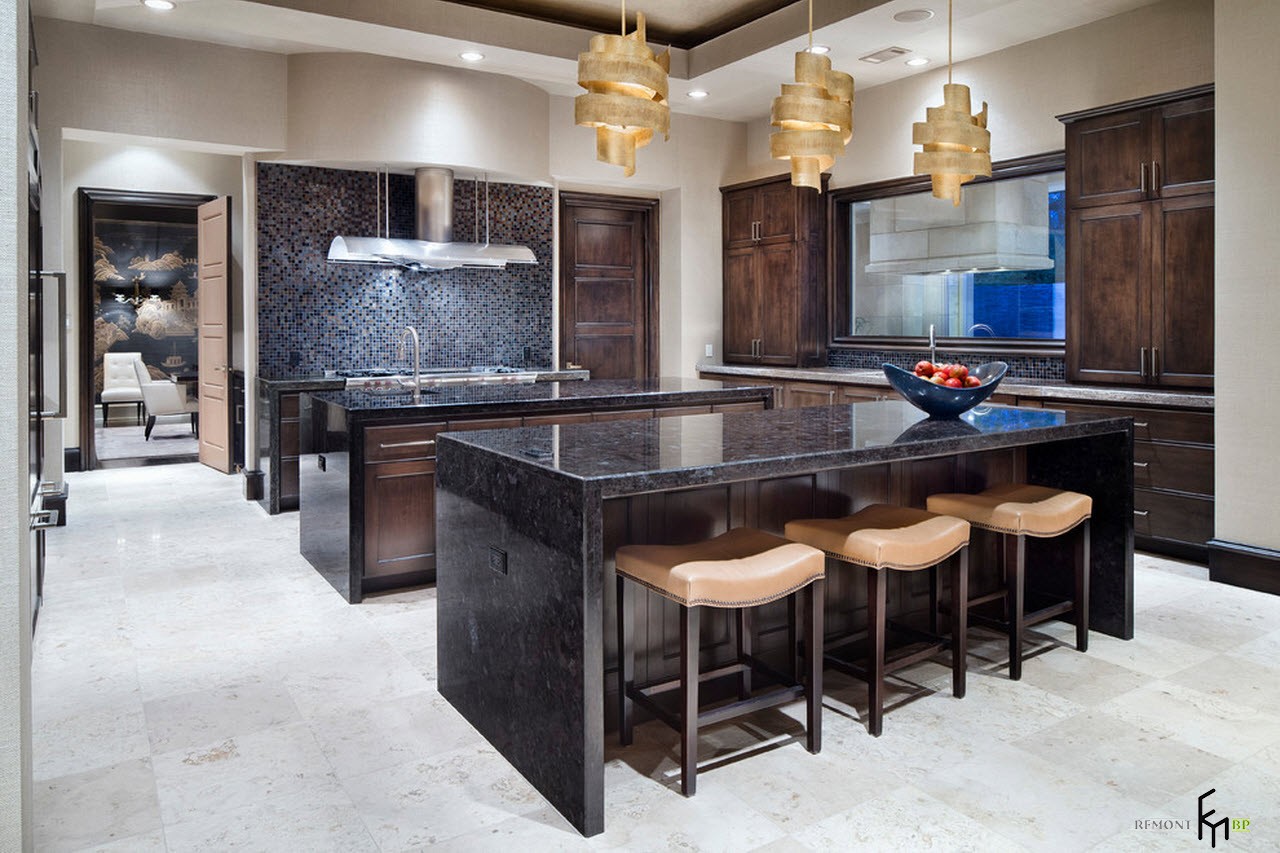 Ιταλικό και ελληνικό στυλ είναι γνωστό για τη χρήση κεραμικών πλακιδίων με μπλε σχέδια σε λευκό φόντο. Ένα τέτοιο κεραμίδι είναι ιδανικό για μια ποδιά κουζίνας, ειδικά αν τα συμπαγή χρώματα συνδυάζονται με σχέδια με σχέδια. Τέτοια κεραμικά δεν θα είναι κατάλληλα για το δάπεδο, καθώς θα φαίνονται πολύ χρωματιστά και βαριά και το κύριο πράγμα στο νότιο εσωτερικό είναι η ελαφρότητα και η ευρυχωρία.