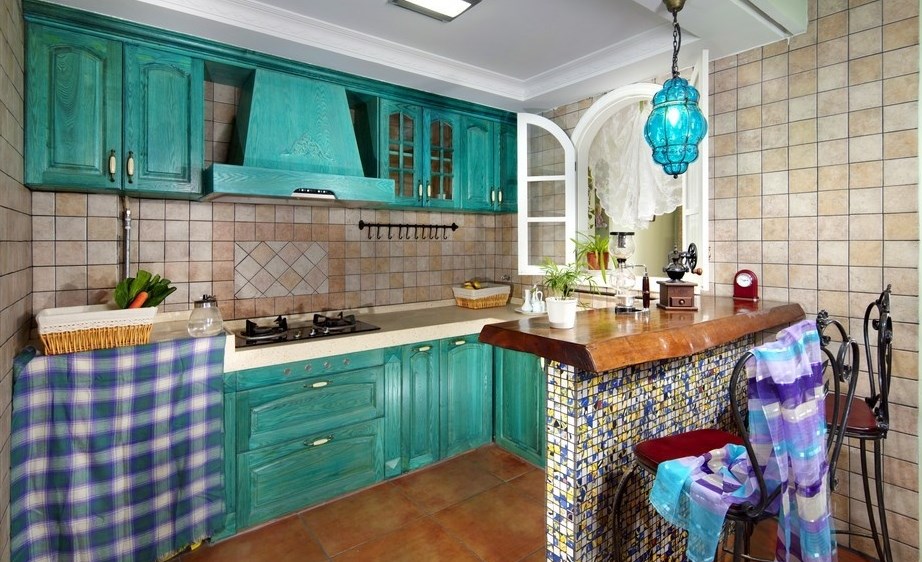 Στο μεσογειακό στυλ, μια κουζίνα με τυποποιημένα πρότυπα και μη τυποποιημένα μεγέθη διαμορφώνεται εύκολα.