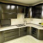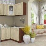 Σε μια μικρή κουζίνα, είναι πολύ σημαντικό ότι μετά την τοποθέτηση ολόκληρου του ακουστικού θα πρέπει να υπάρχει αρκετός ελεύθερος χώρος για άνετη και ανεμπόδιστη κίνηση γύρω από το δωμάτιο. Για να το κάνετε αυτό, χρησιμοποιήστε ρηχά γωνιακά ερμάρια. Εκτός από τα παραπάνω πλεονεκτήματα, έχουν μια αισθητική υπεροχή - ένα τέτοιο ακουστικό φαίνεται πιο απλό και πιο ελαφρύ από τα μεγάλα αδέλφια του, αλλά αυτό δεν είναι απολύτως αρνητικό, αλλά αντίθετα, λόγω της ελαφρότητάς του, μπορείτε να τοποθετήσετε επιπλέον διακόσμηση σε αυτό. Η τοποθέτηση των μονάδων κουζίνας μπορεί να είναι πολύ διαφορετική, διακρίνει τις άμεσες μονάδες με πέντε γωνίες. Η πρώτη επιλογή είναι αρκετά δύσκολο να χειριστεί, λόγω της άβολα τοποθέτηση των ντουλαπιών τοίχου, που τους καθιστά πολύ άβολα για να ανοίξει.Και η δεύτερη επιλογή είναι πιο ορθολογική και δεν καταστρέφει τη συνολική εικόνα του δωματίου, σε αντίθεση με την άμεση. Αλλά υπάρχει ένα μεγάλο μείον - μια πολύ υψηλή τιμή σε σύγκριση με τους συνομηλίκους. Η άμεση λειτουργική μονάδα ακουστικών θα σας κοστίσει πολλές φορές φθηνότερα. Υπάρχουν γωνιακά ερμάρια που εξοικονομούν σημαντικά χώρο στο δωμάτιό μας, αλλά δεν βρίσκονται στο συνηθισμένο σετ και συχνά πρέπει να τα παραγγείλετε ξεχωριστά.