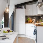 Στα διαμερίσματα μικρών πόλεων, μια κατάσταση συμβαίνει συχνά όταν ο χώρος για την κουζίνα είναι πολύ μικρός και πρέπει να χρησιμοποιήσετε ορθολογικά ολόκληρο τον χώρο. Εξαιτίας αυτού που τίθεται το οξύ ερώτημα, πώς να τοποθετήσετε εργονομικά όλα τα εξαρτήματα του δωματίου: έναν νεροχύτη, μια σόμπα για μαγείρεμα, μια κουζίνα, ένα ψυγείο και πολλά άλλα. Χρησιμοποιώντας το παράδειγμα της παρακάτω φωτογραφίας, μπορείτε να εξετάσετε μερικές επιτυχημένες επιλογές σχεδίασης για ένα μικρό χώρο κουζίνας.