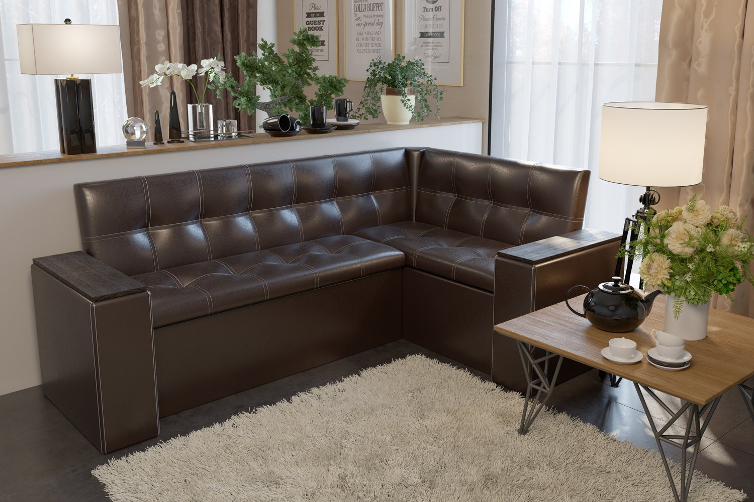Μια γωνιά κουζίνας ονομάζεται σετ επίπλων από καναπέ και τραπεζαρία