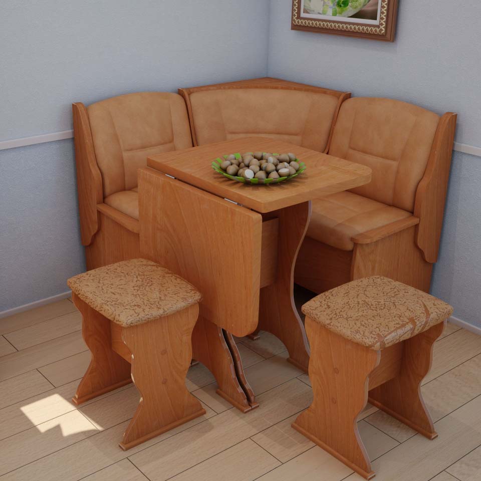 - Μικρό μέγεθος. Αυτό είναι ιδιαίτερα κατάλληλο σε μικρές κουζίνες. Ένας ξεδιπλωμένος χώρος ύπνου καταλαμβάνει το ίδιο χώρο με την ίδια τη γωνία.