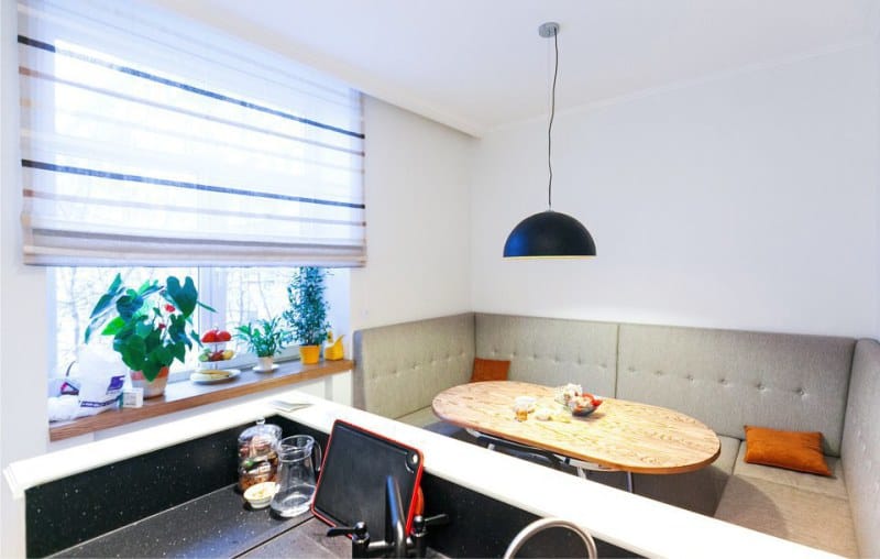 Μια συμπαγής γωνιά σε μια μικρή κουζίνα - μια εξαιρετική λύση για όσους αγαπούν την άνεση