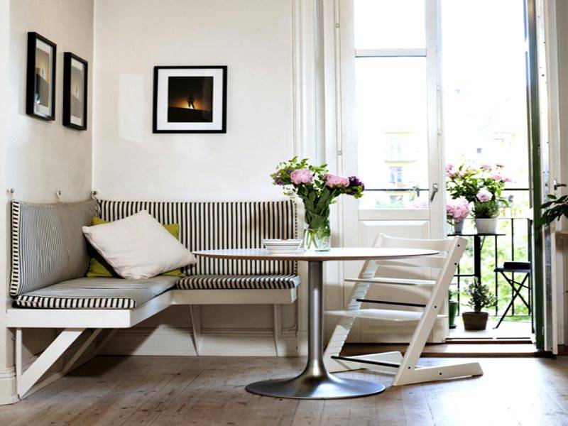 Ακόμα κι αν είστε ιδιοκτήτης μικρής κουζίνας, μην απελπίζεστε. Στη μικρή κουζίνα μπορείτε να δημιουργήσετε μια οικογενειακή γωνιά, η οποία θα γίνει ένα αγαπημένο σημείο διακοπών για όλα τα μέλη της οικογένειας. Η πραγματική σωτηρία σε αυτή την κατάσταση είναι οι μικρές γωνίες της κουζίνας. Γνωρίζοντας όλες τις βασικές αποχρώσεις και παράγοντες, μπορείτε να εγκαταστήσετε εύκολα μια τραπεζαρία στην κουζίνα - έναν καναπέ, καρέκλες ή σκαμπό και ένα τραπέζι.