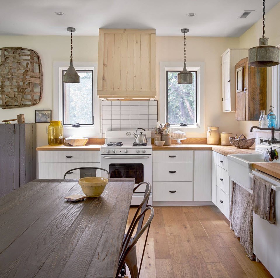 - Χώρα. Χαρακτηρίζεται από άνεση και πρακτικότητα. Η αληθινή ενσάρκωση των ρουστίκ μοτίβων. Τα φυσικά χρώματα και τα υλικά εκτιμούνται: ξύλινες κουζίνες, ψάθινα έπιπλα, κουρτίνες λινών, πήλινα σκεύη.