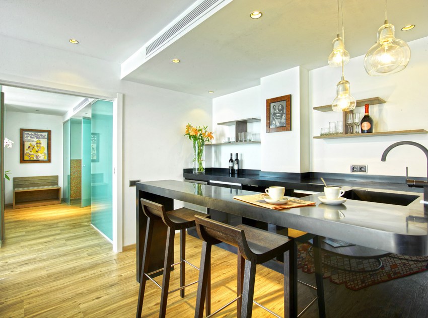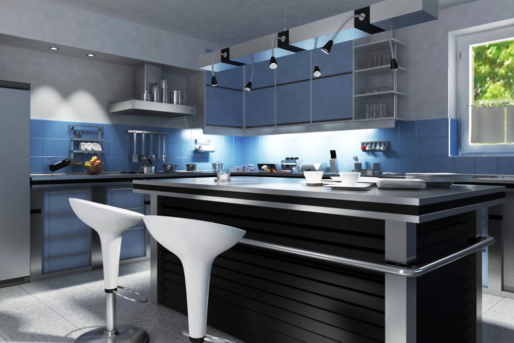 Η μοντέρνα κουζίνα χρησιμοποιεί ξεχωριστό φωτισμό για κάθε λειτουργική περιοχή