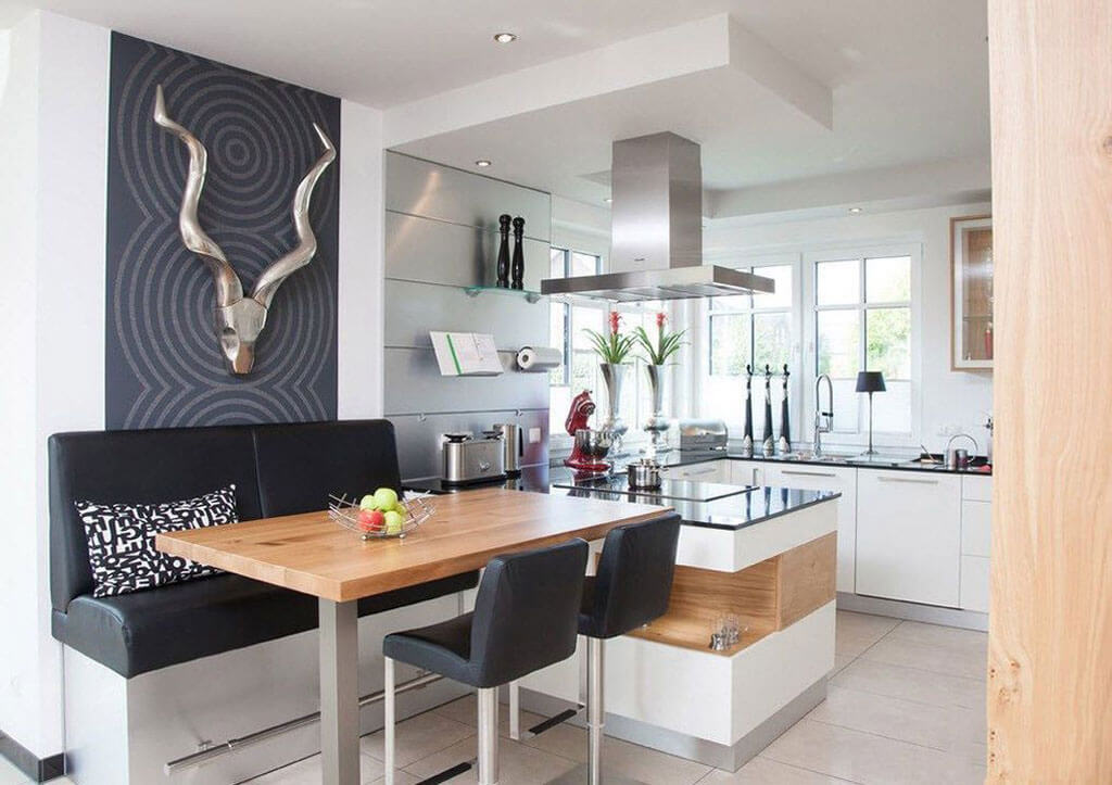 Στη μεγάλη κουζίνα μπορείτε να πραγματοποιήσετε ακόμα και τις πιο τολμηρές ιδέες και ασυνήθιστες διατάξεις. Μια επιλογή από φωτογραφίες σχετικά με το θέμα: σχέδιο κουζίνας 14 τ.μ. φωτογραφία 2020 σύγχρονες ιδέες.